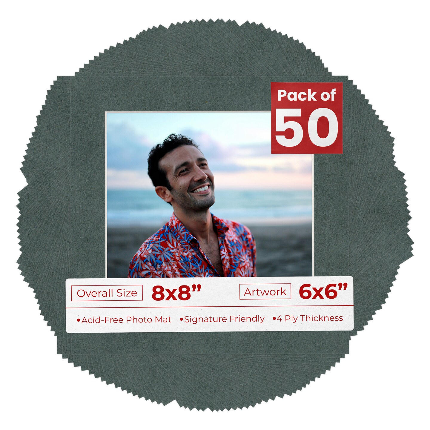 Dark Grey Suede Mat Board for 8x8 Frames - Fits 6x6 Photos