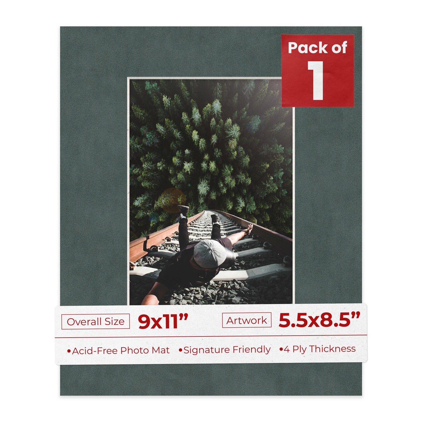 Dark Grey Suede Mat Board for 9x11 Frames - Fits 5.5x8.5 Photos
