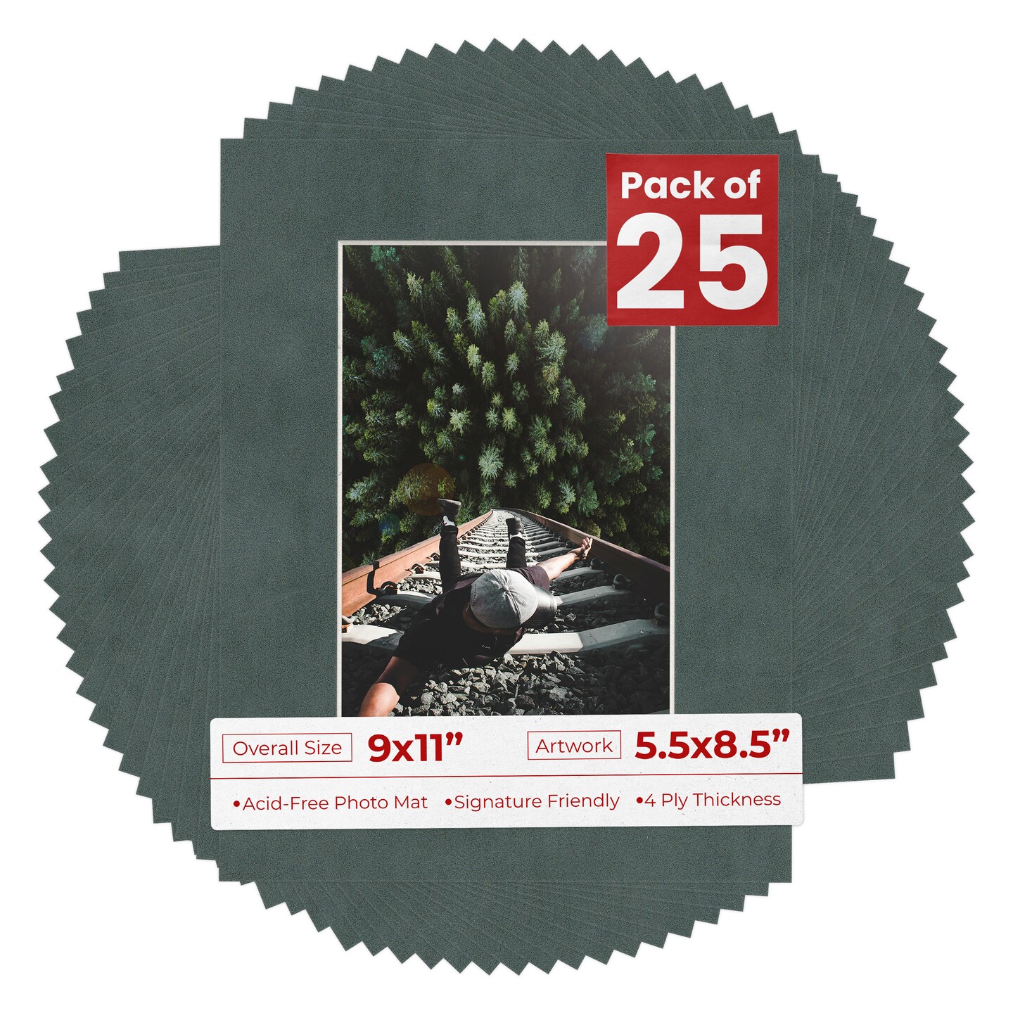 Dark Grey Suede Mat Board for 9x11 Frames - Fits 5.5x8.5 Photos