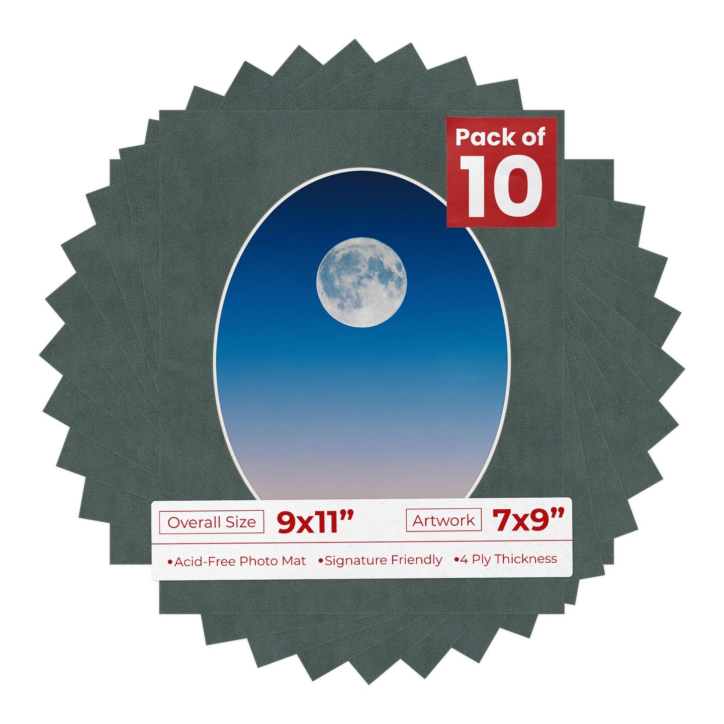 Dark Grey Suede Mat Board for 9x11 Frames - Oval Opening for 7x9 Photos