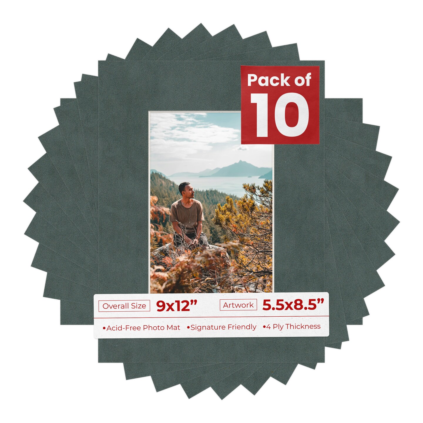 Dark Grey Suede Mat Board for 9x12 Frames - Fits 5.5x8.5 Photos