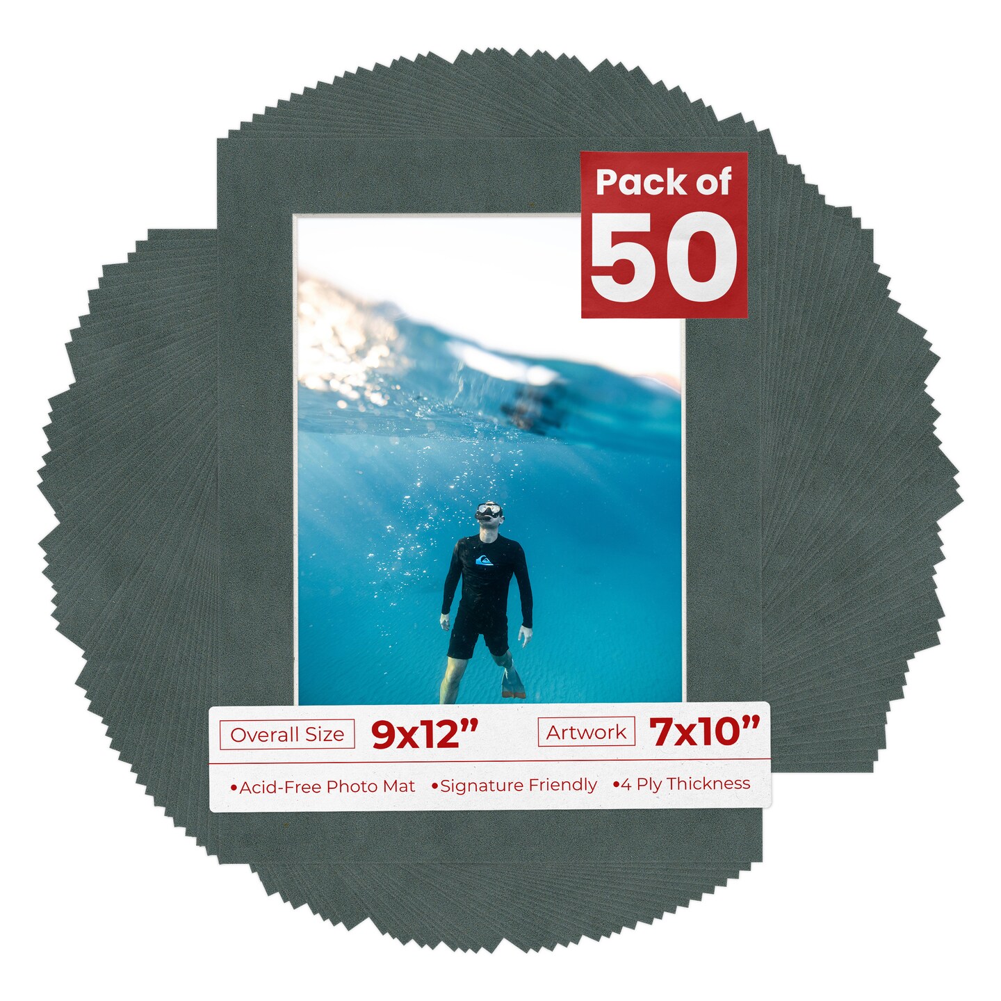 Dark Grey Suede Mat Board for 9x12 Frames - Fits 7x10 Photos