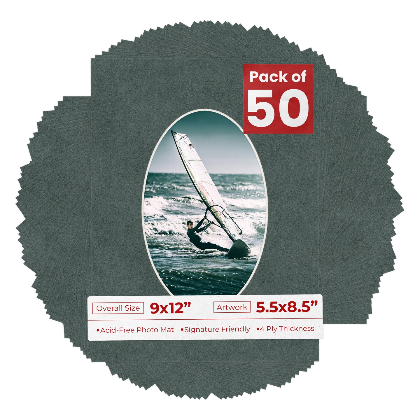 Dark Grey Suede Mat Board for 9x12 Frames - Oval Opening for 5.5x8.5 Photos