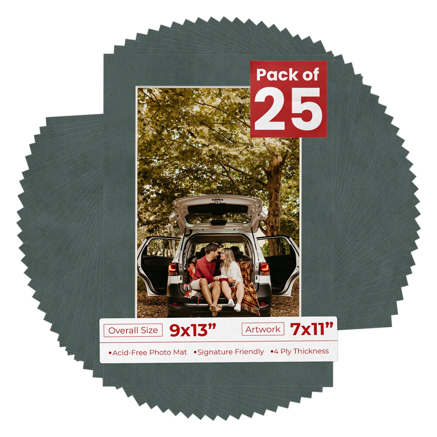 Dark Grey Suede Mat Board for 9x13 Frames - Fits 7x11 Photos