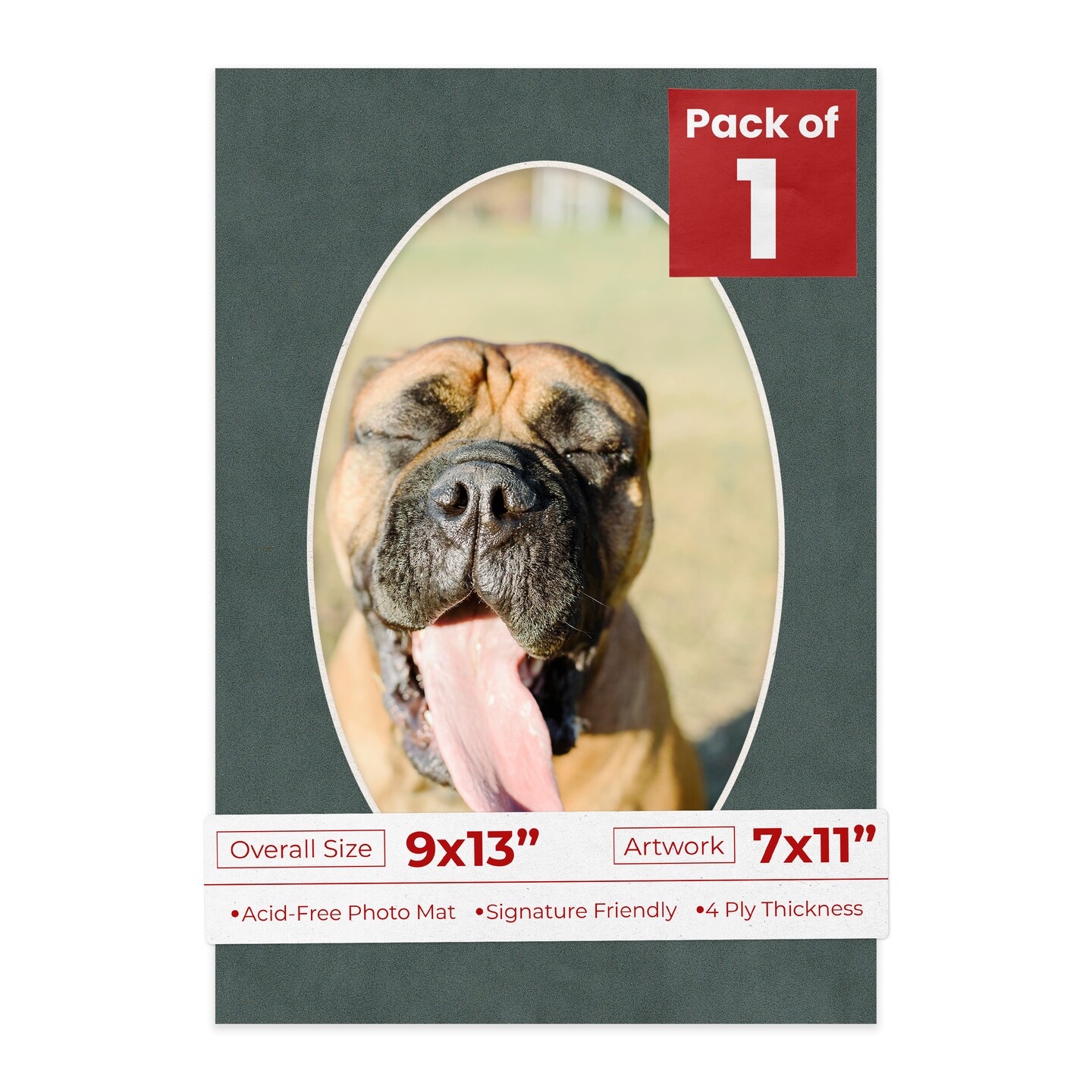 Dark Grey Suede Mat Board for 9x13 Frames - Oval Opening for 7x11 Photos