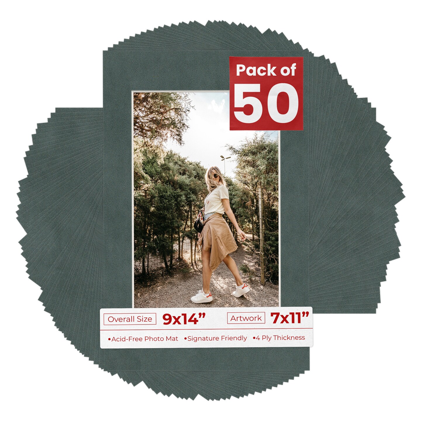 Dark Grey Suede Mat Board for 9x14 Frames - Fits 7x11 Photos
