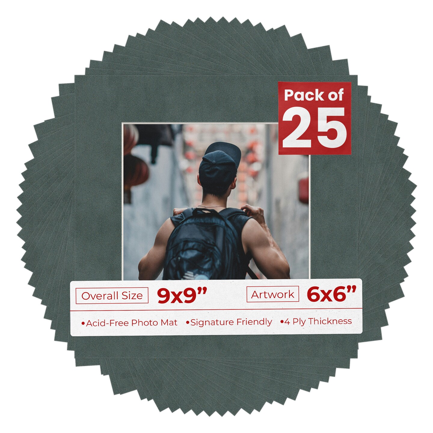 Dark Grey Suede Mat Board for 9x9 Frames - Fits 6x6 Photos