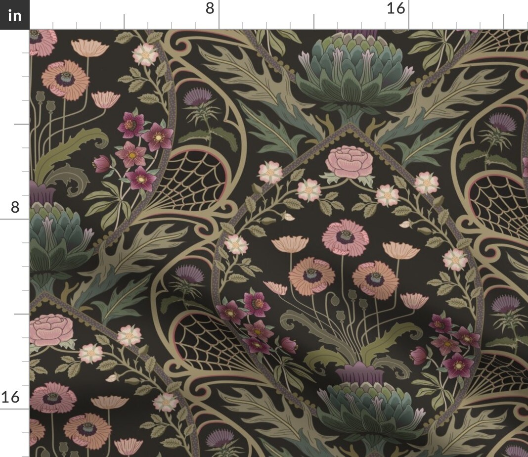 dark moody damask,roses hellebores,artichoke flower,olive green,dusty pink,botanical Custom Printed Fabric by Spoonflower Various Fabrics by the Yard or Fat Quarter