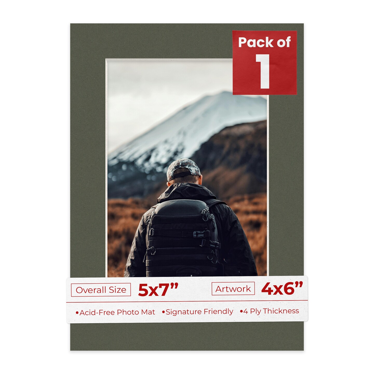 Dark Olive Green Mat Board for 5x7 Frames - Fits 4x6 Photos