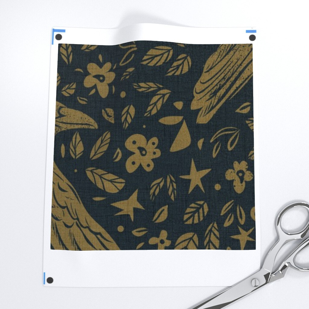 Dark Raven Gothic Floral Crow Corvid Witchy Boho Crescent Moon Lunar Cycle Faded Gold Custom Printed Fabric by Spoonflower Various Fabrics by the Yard or Fat Quarter