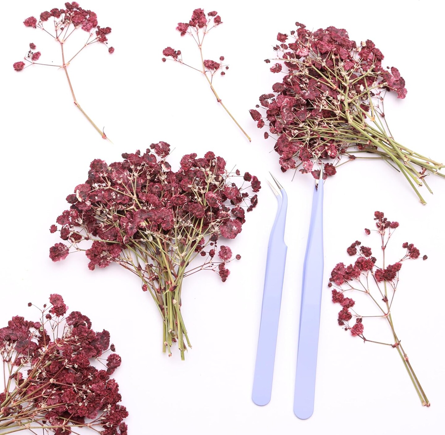 Dark Red 70 Pcs Dried Babys Breath Pressed Flowers Bulk.Vacuum-Packed Mini Dried Babies Breath Flowe Specimen +2 Tweezers, for Resin Art /DIY Making Wedding Card/ Home Party Decor.