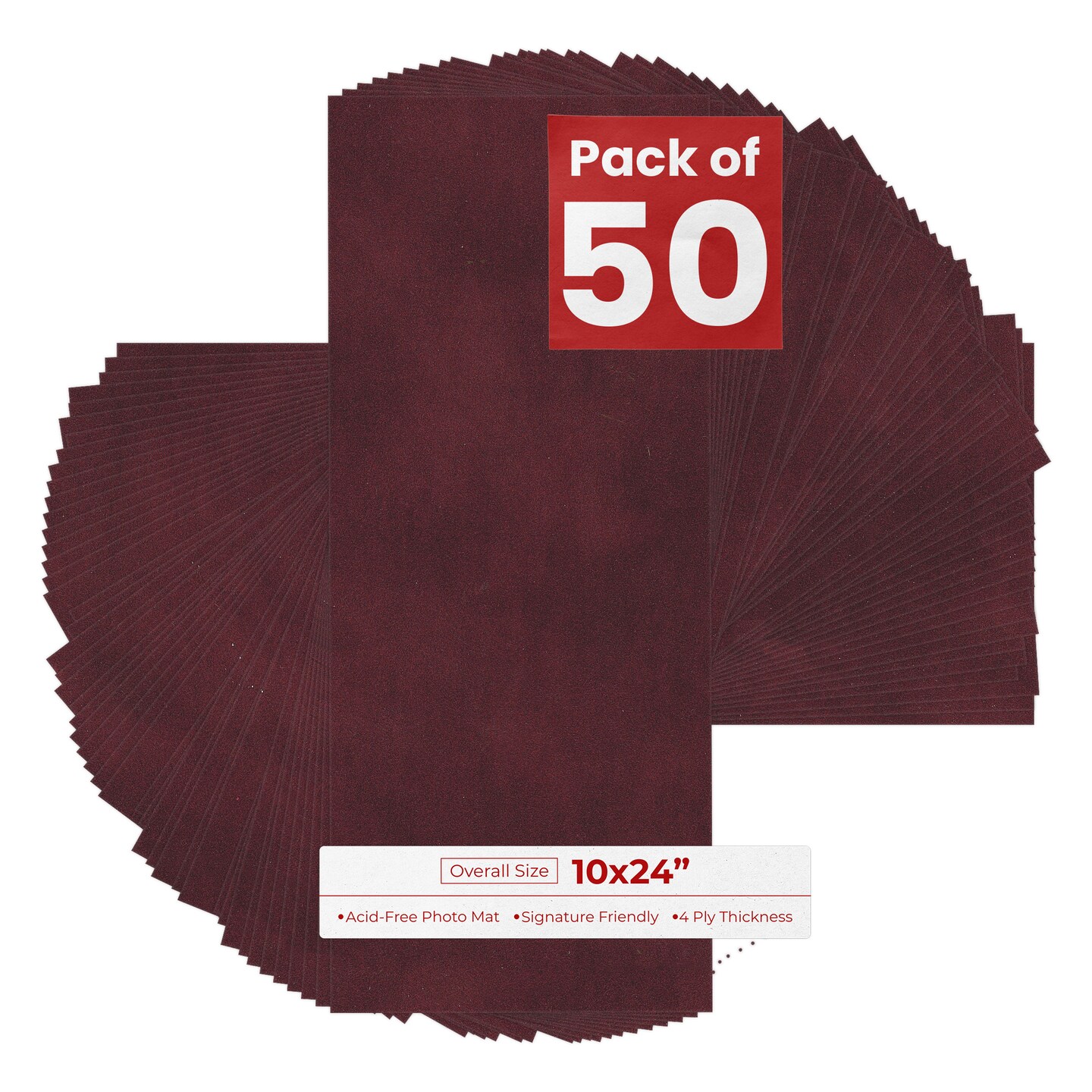 Dark Red Suede 10x24 Uncut Mat Board - Blank Sheets, No Opening