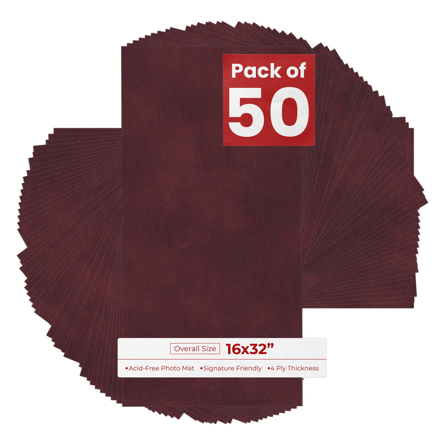 Dark Red Suede 16x32 Uncut Mat Board - Blank Sheets, No Opening