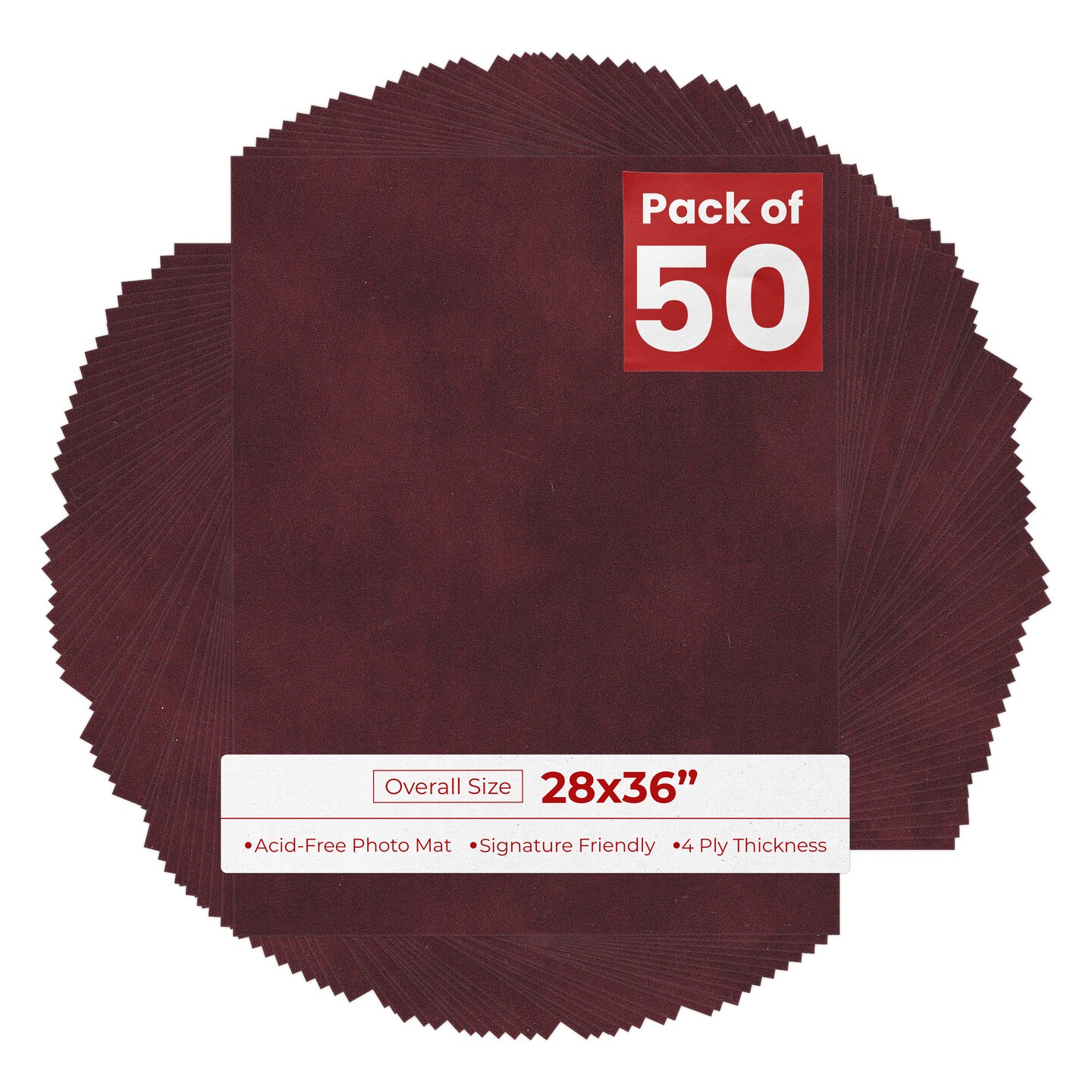 Dark Red Suede 28x36 Uncut Mat Board - Blank Sheets, No Opening