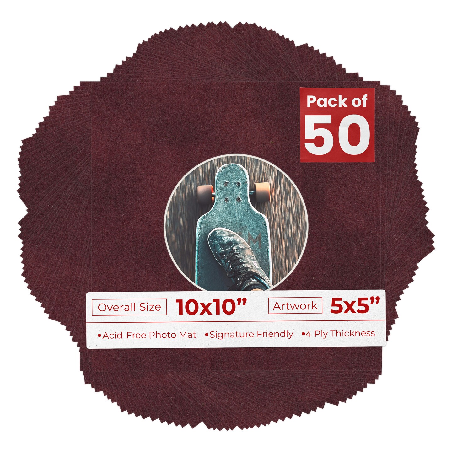 Dark Red Suede Mat Board for 10x10 Frames - Circle Opening for 5x5 Photos