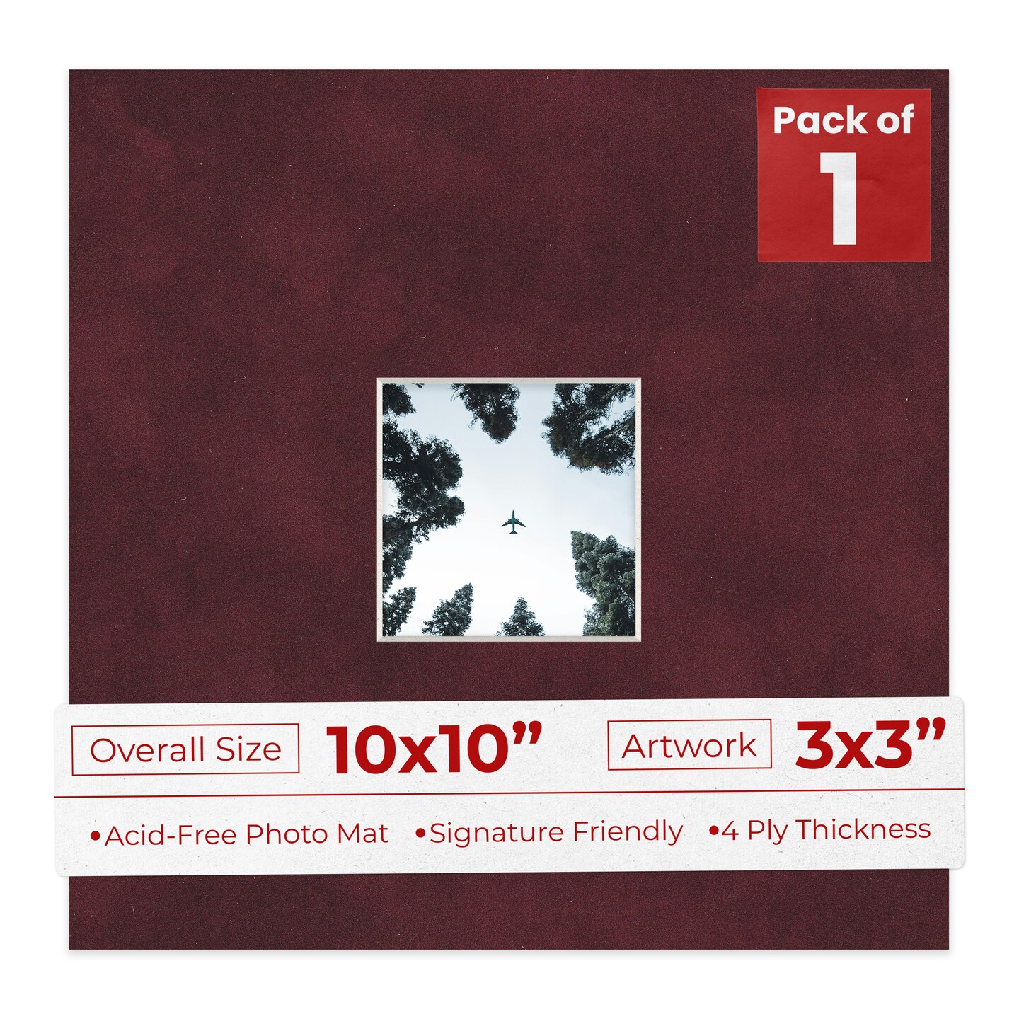 Dark Red Suede Mat Board for 10x10 Frames - Fits 3x3 Photos