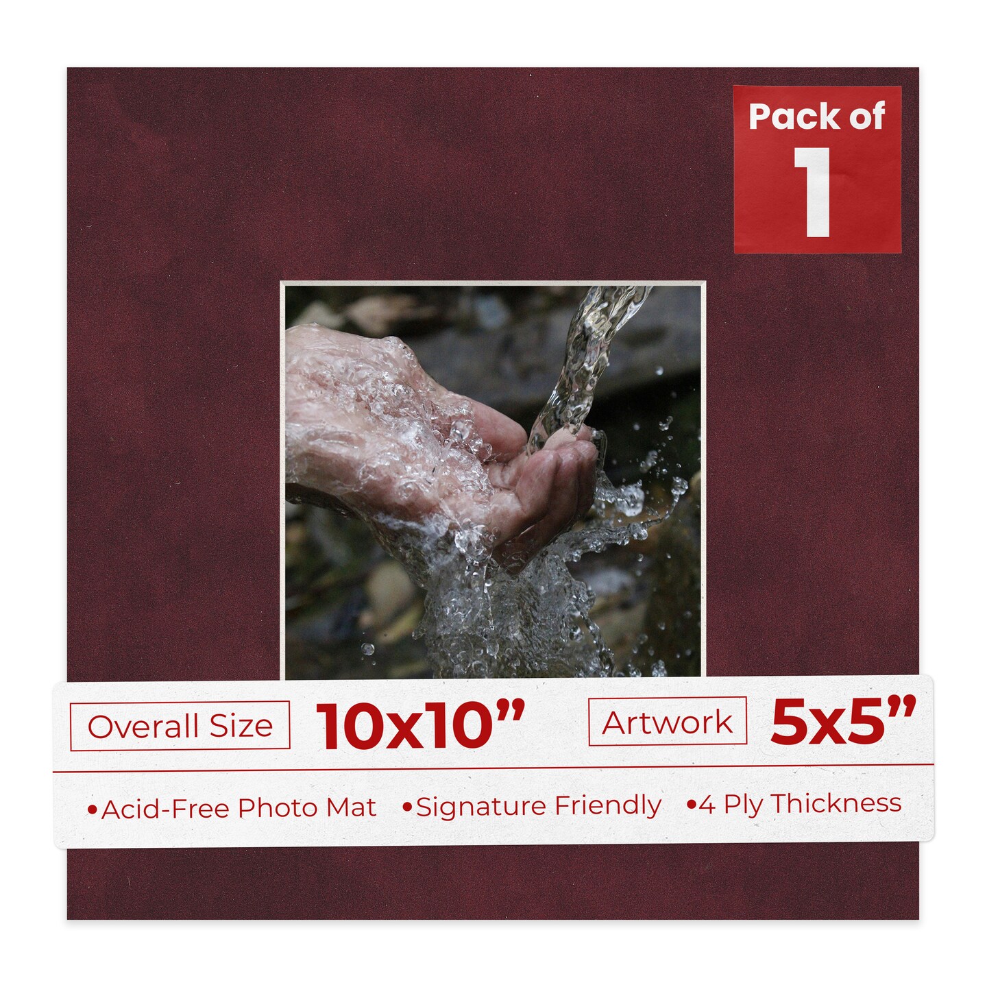 Dark Red Suede Mat Board for 10x10 Frames - Fits 5x5 Photos
