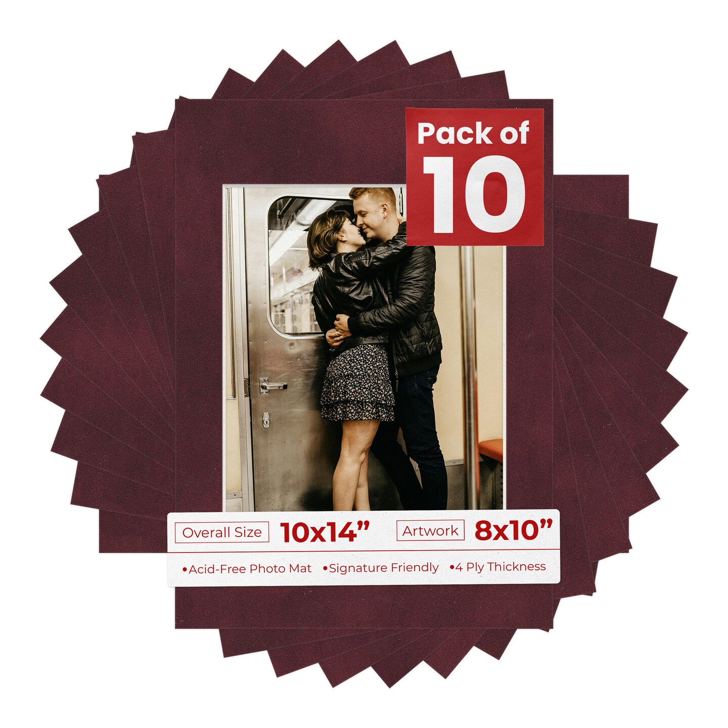 Dark Red Suede Mat Board for 10x14 Frames - Fits 8x10 Photos
