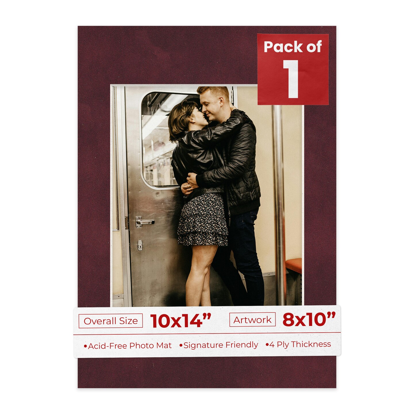 Dark Red Suede Mat Board for 10x14 Frames - Fits 8x10 Photos