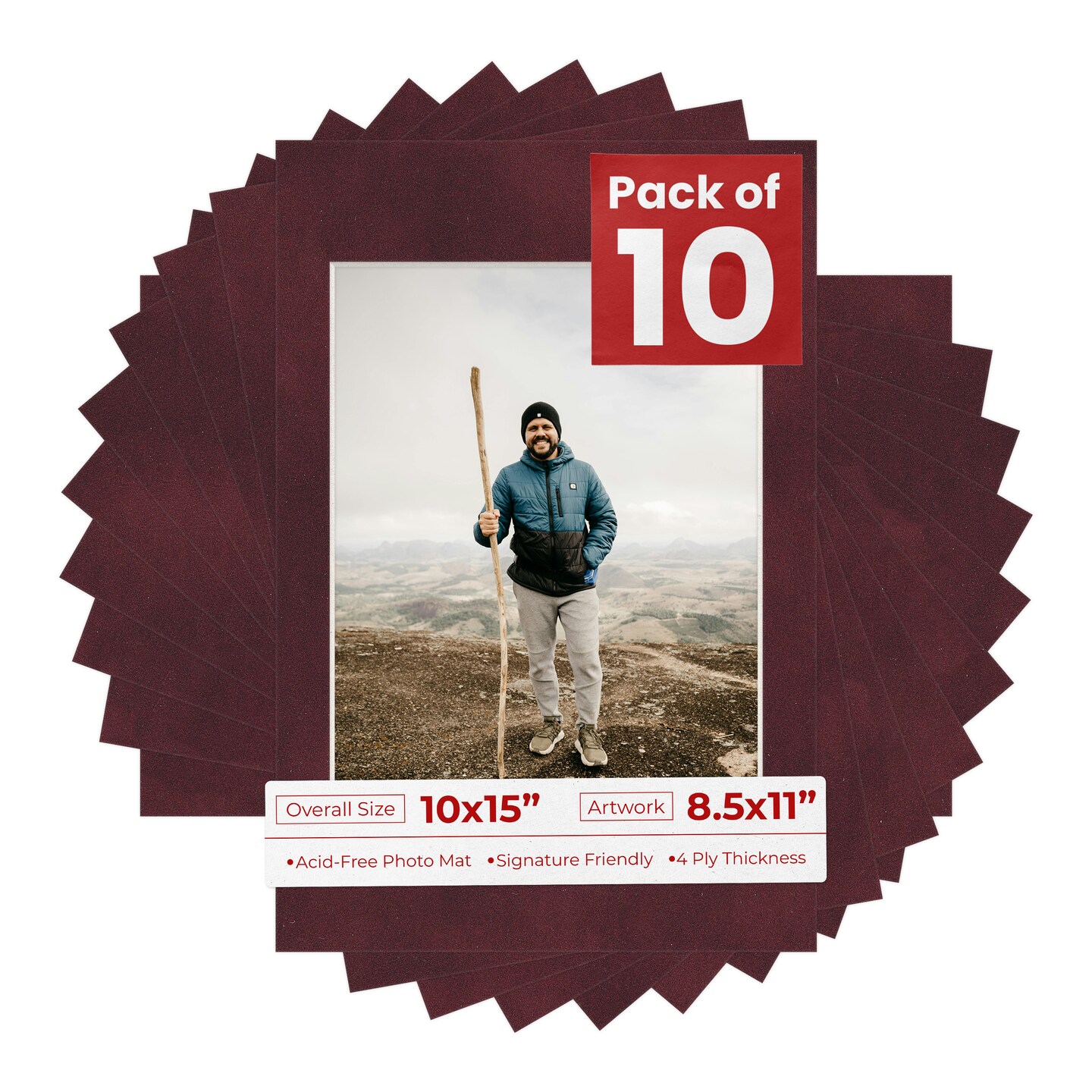 Dark Red Suede Mat Board for 10x15 Frames - Fits 8.5x11 Photos