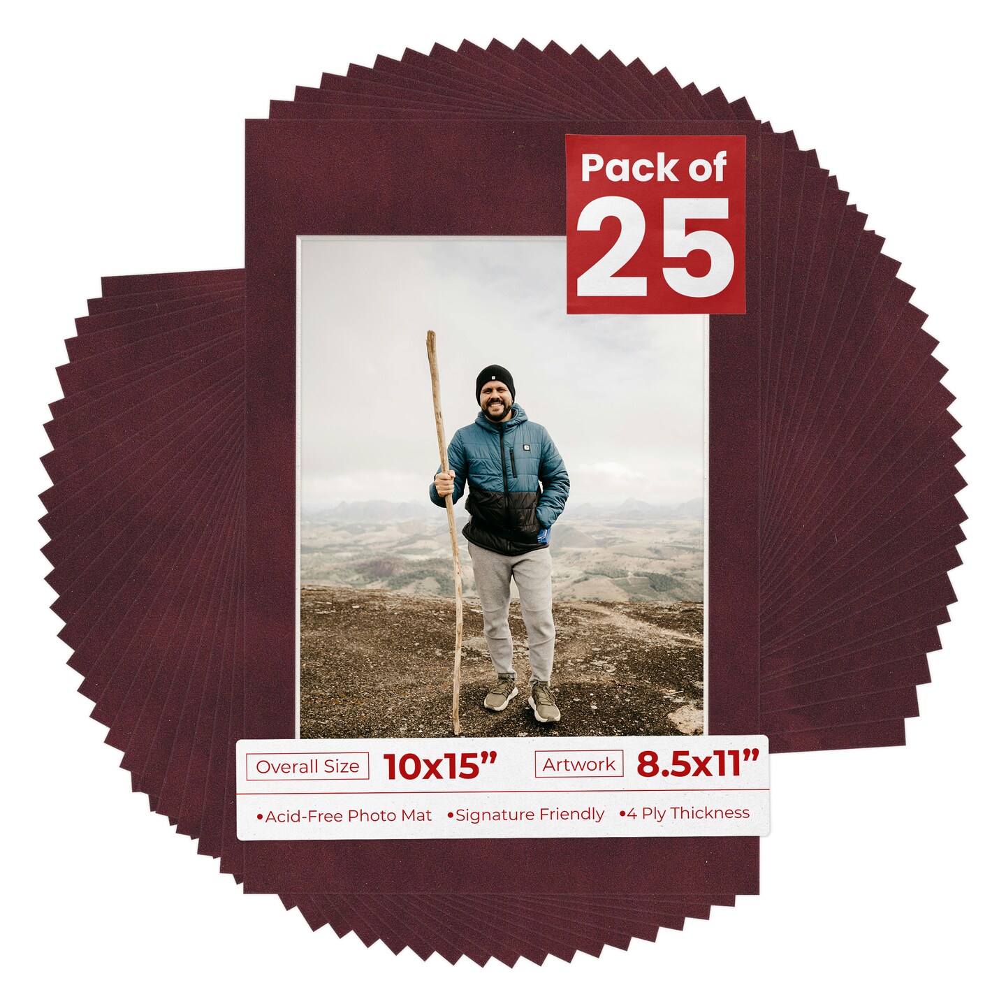 Dark Red Suede Mat Board for 10x15 Frames - Fits 8.5x11 Photos