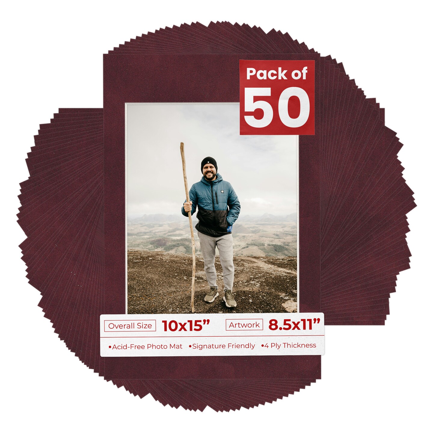 Dark Red Suede Mat Board for 10x15 Frames - Fits 8.5x11 Photos