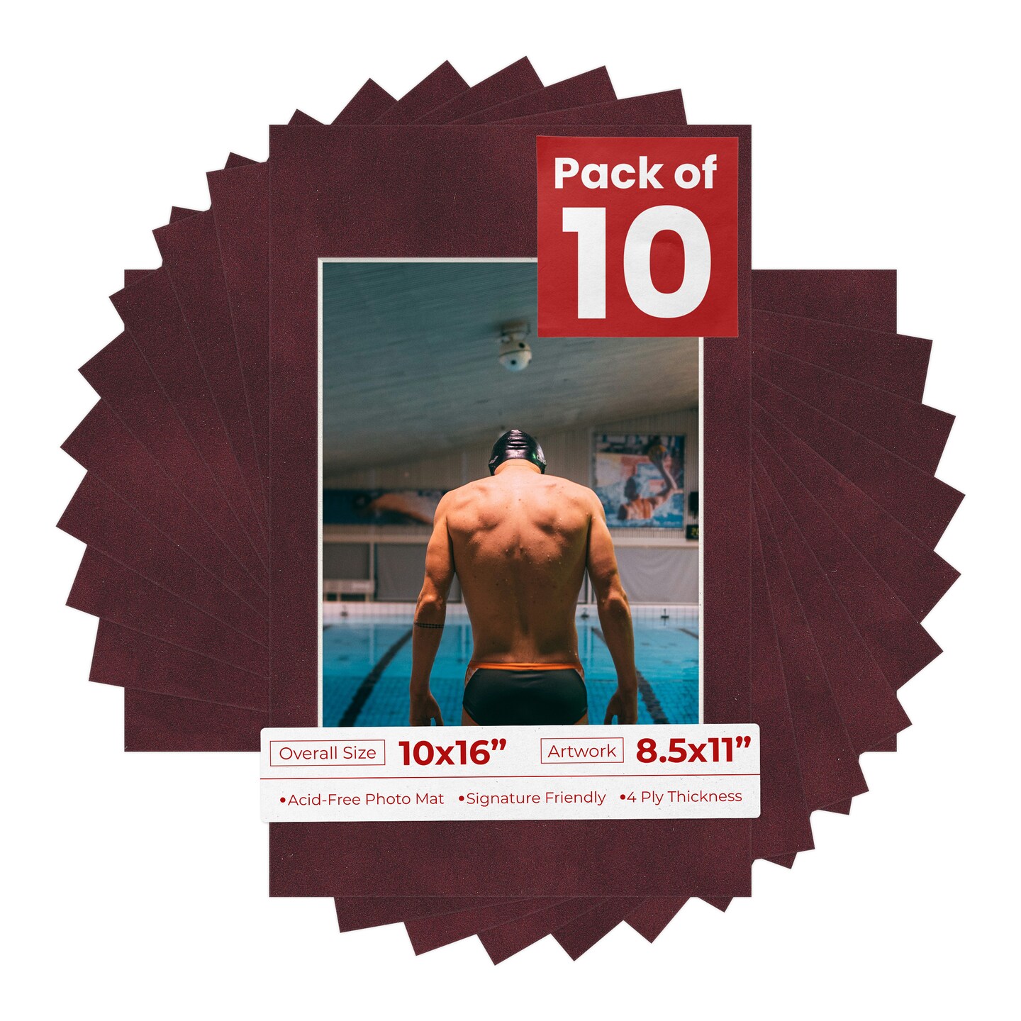 Dark Red Suede Mat Board for 10x16 Frames - Fits 8.5x11 Photos