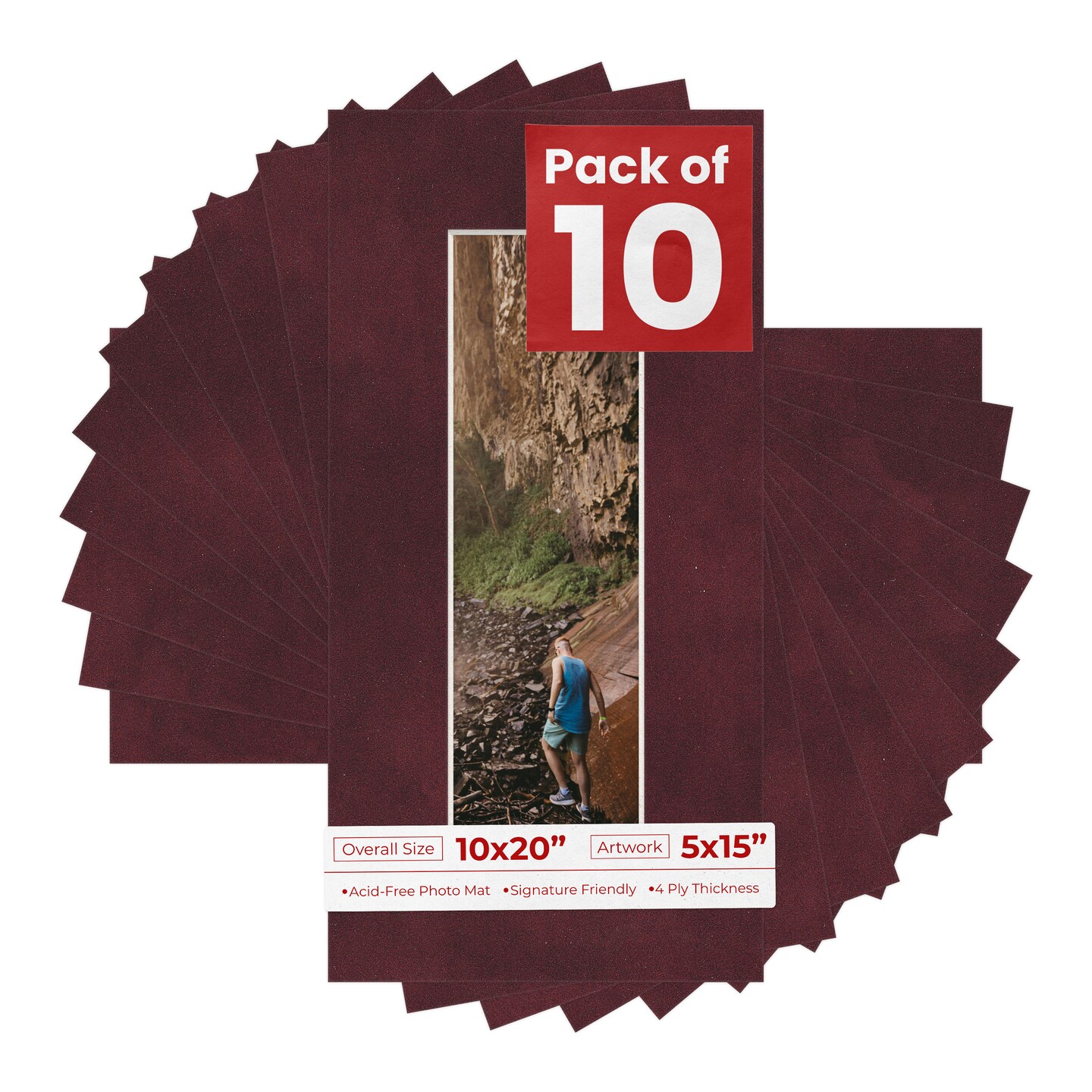 Dark Red Suede Mat Board for 10x20 Frames - Fits 5x15 Photos