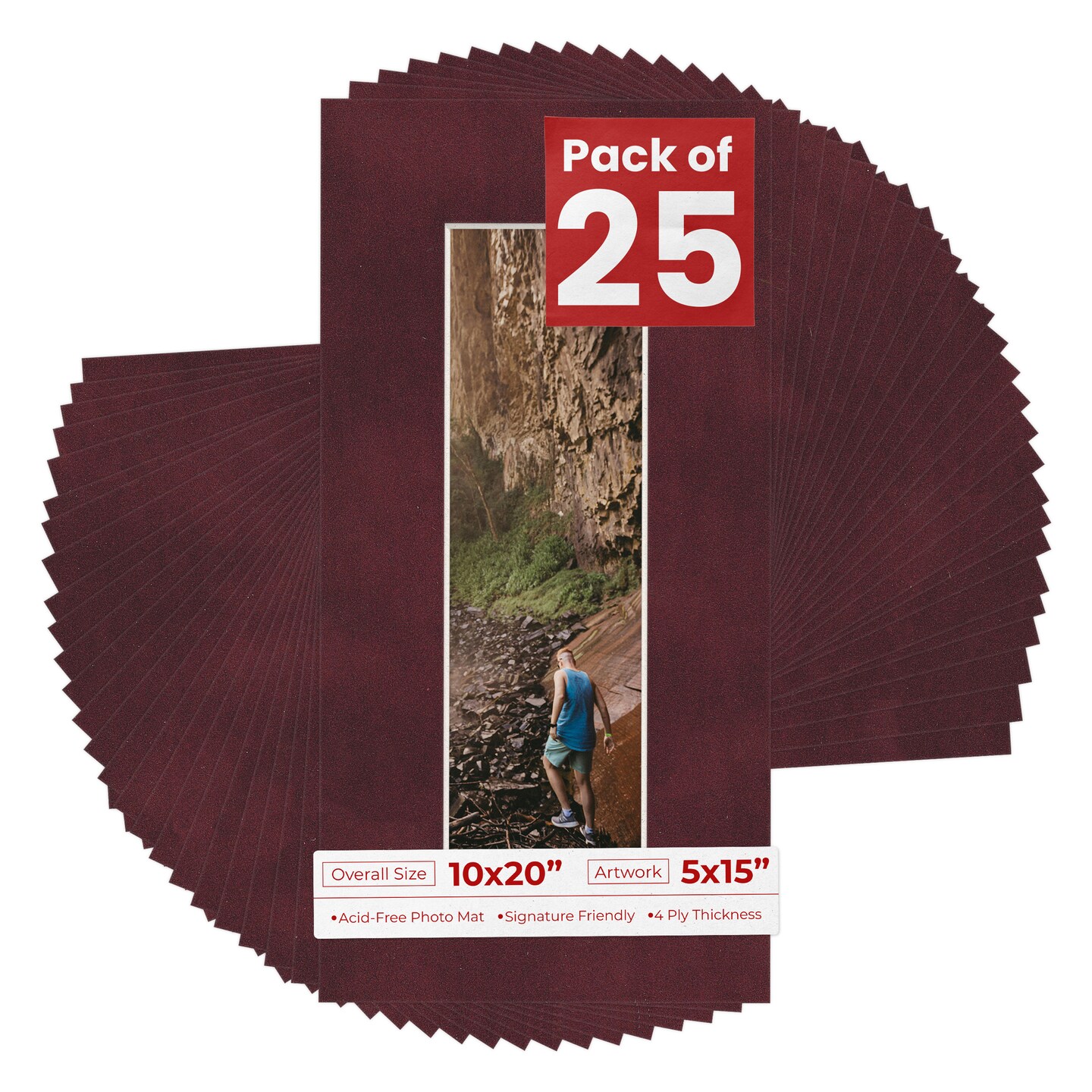 Dark Red Suede Mat Board for 10x20 Frames - Fits 5x15 Photos