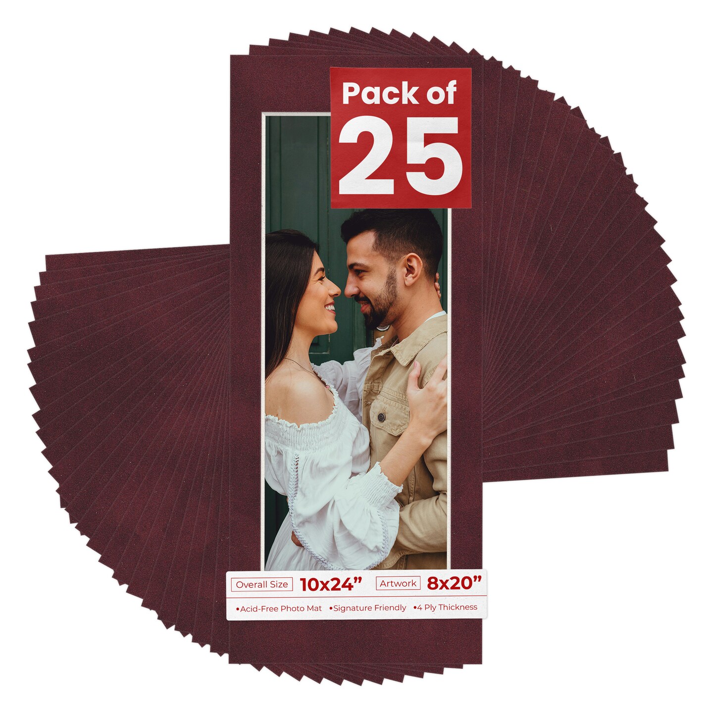 Dark Red Suede Mat Board for 10x24 Frames - Fits 8x20 Photos