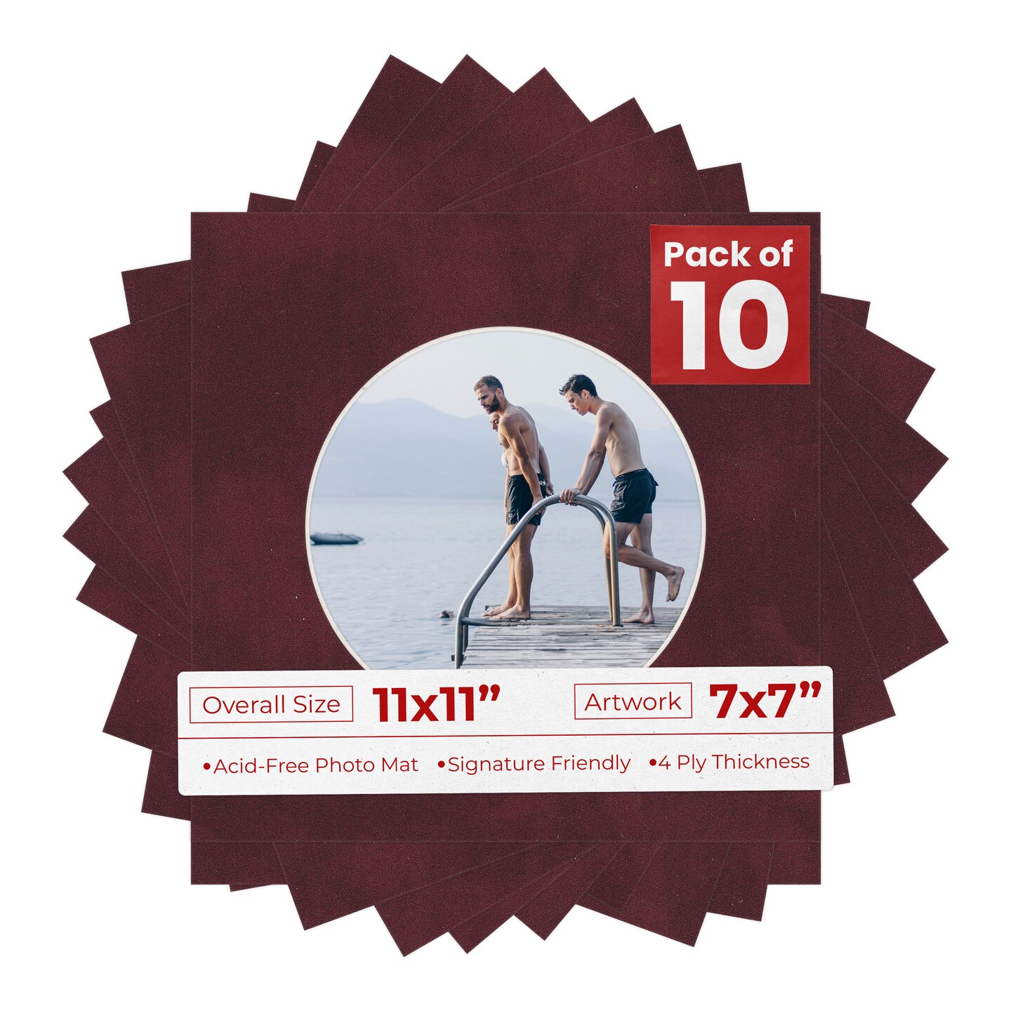 Dark Red Suede Mat Board for 11x11 Frames - Circle Opening for 7x7 Photos