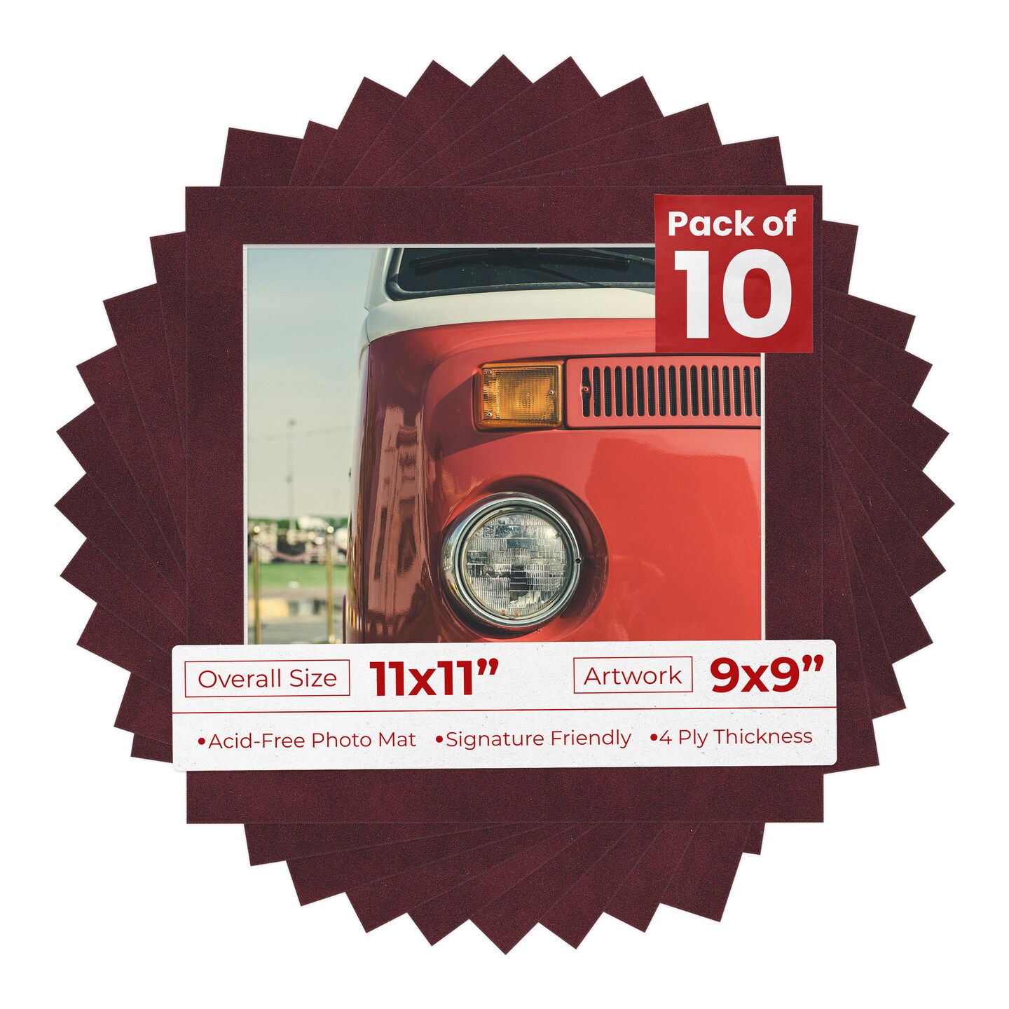 Dark Red Suede Mat Board for 11x11 Frames - Fits 9x9 Photos