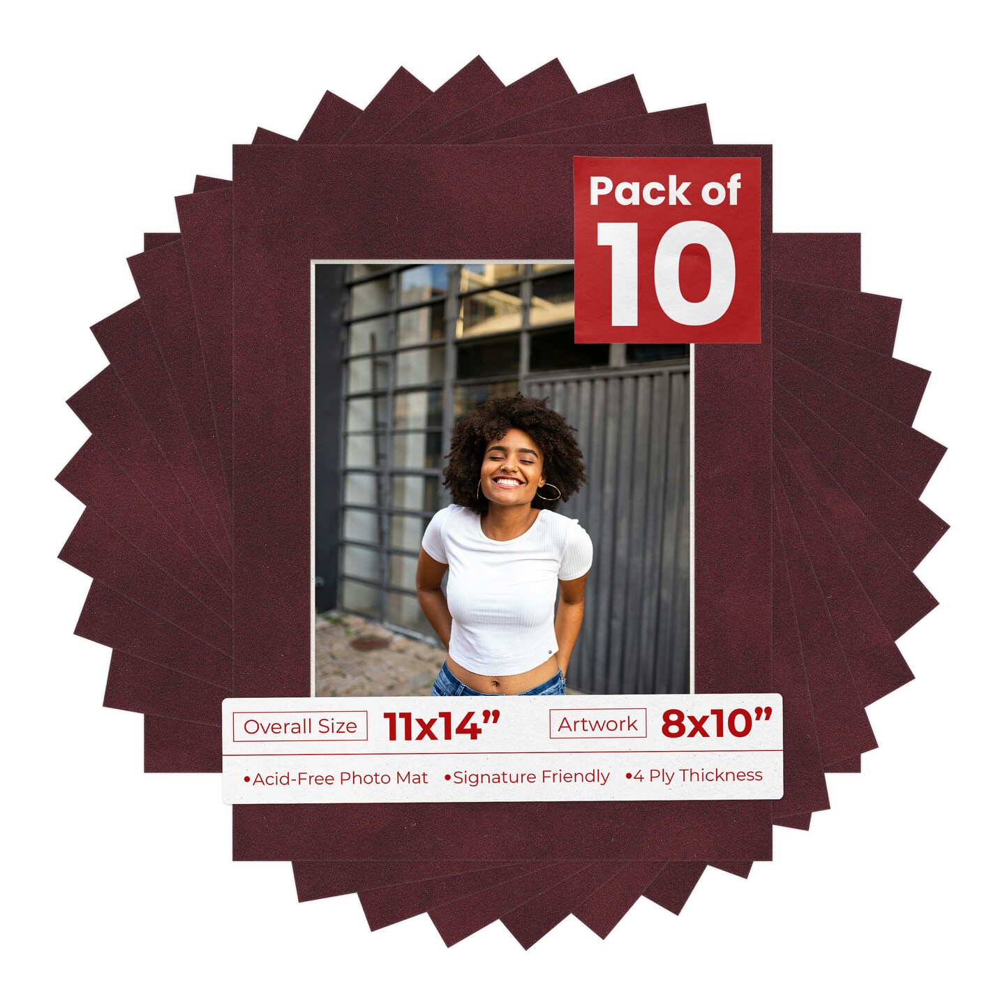 Dark Red Suede Mat Board for 11x14 Frames - Fits 8x10 Photos