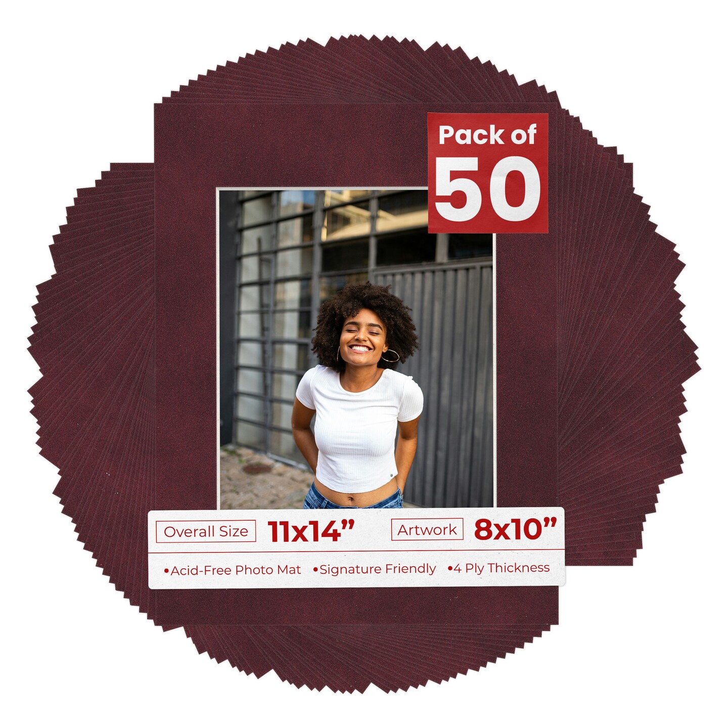 Dark Red Suede Mat Board for 11x14 Frames - Fits 8x10 Photos