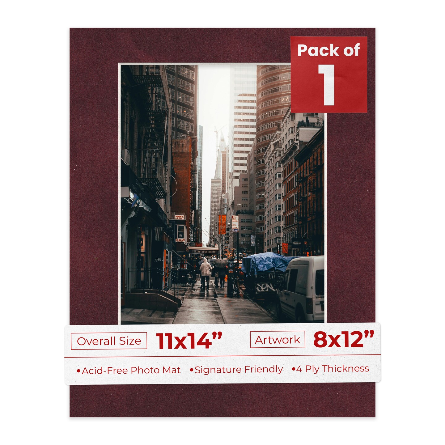 Dark Red Suede Mat Board for 11x14 Frames - Fits 8x12 Photos
