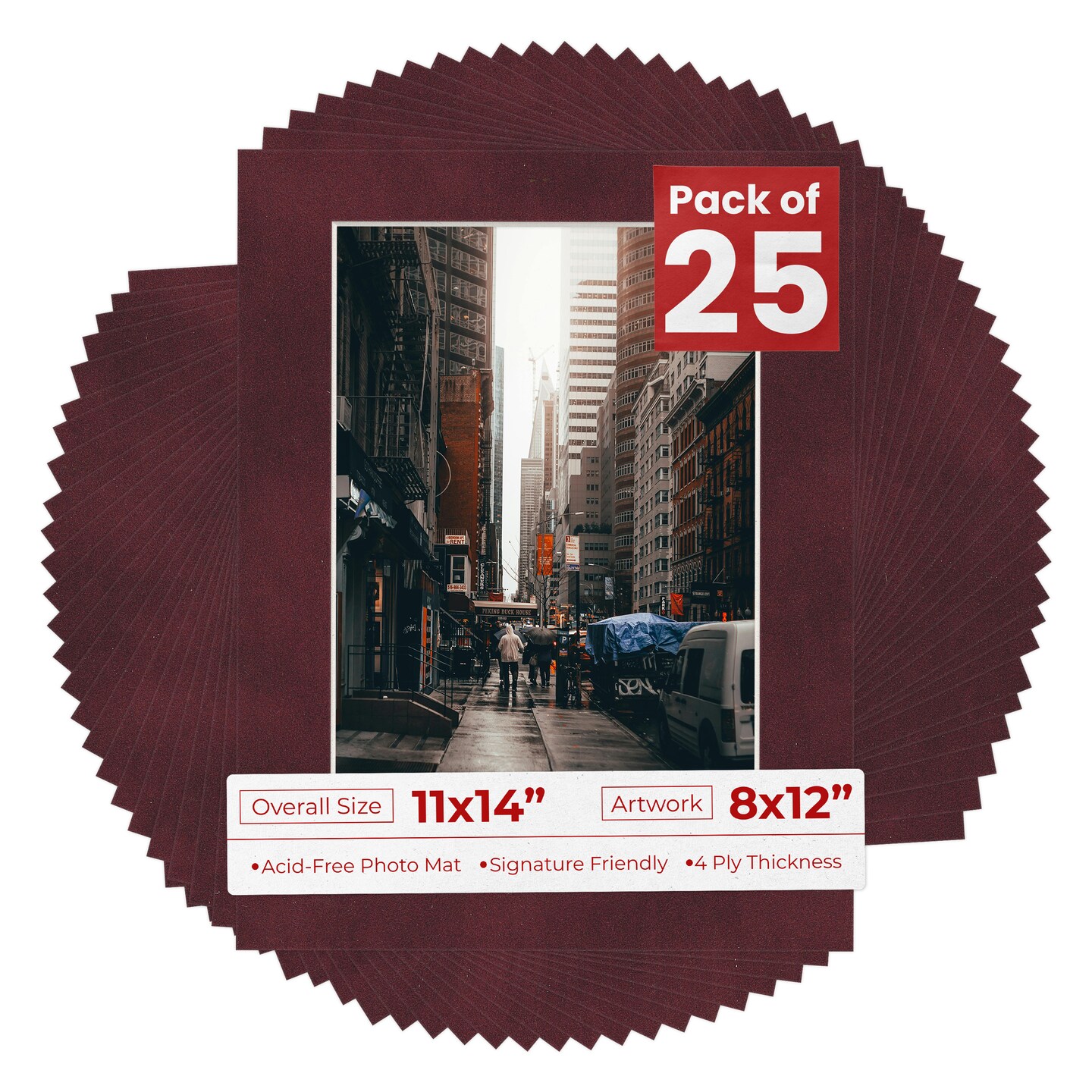 Dark Red Suede Mat Board for 11x14 Frames - Fits 8x12 Photos