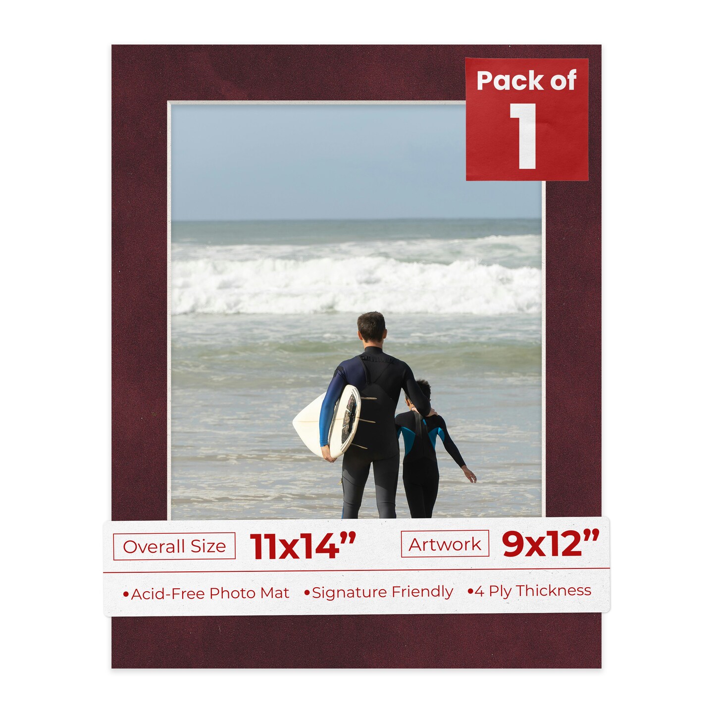 Dark Red Suede Mat Board for 11x14 Frames - Fits 9x12 Photos
