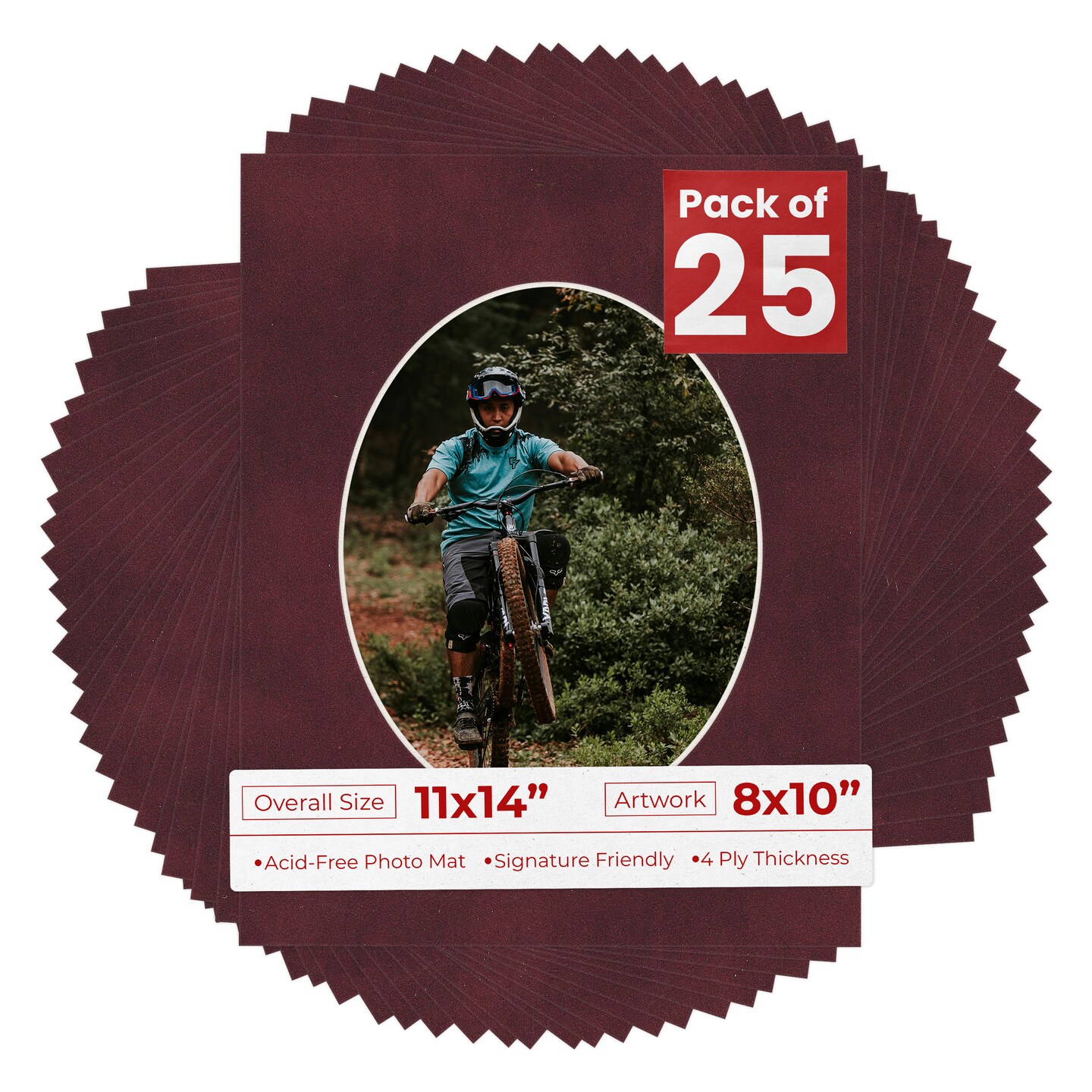 Dark Red Suede Mat Board for 11x14 Frames - Oval Opening for 8x10 Photos