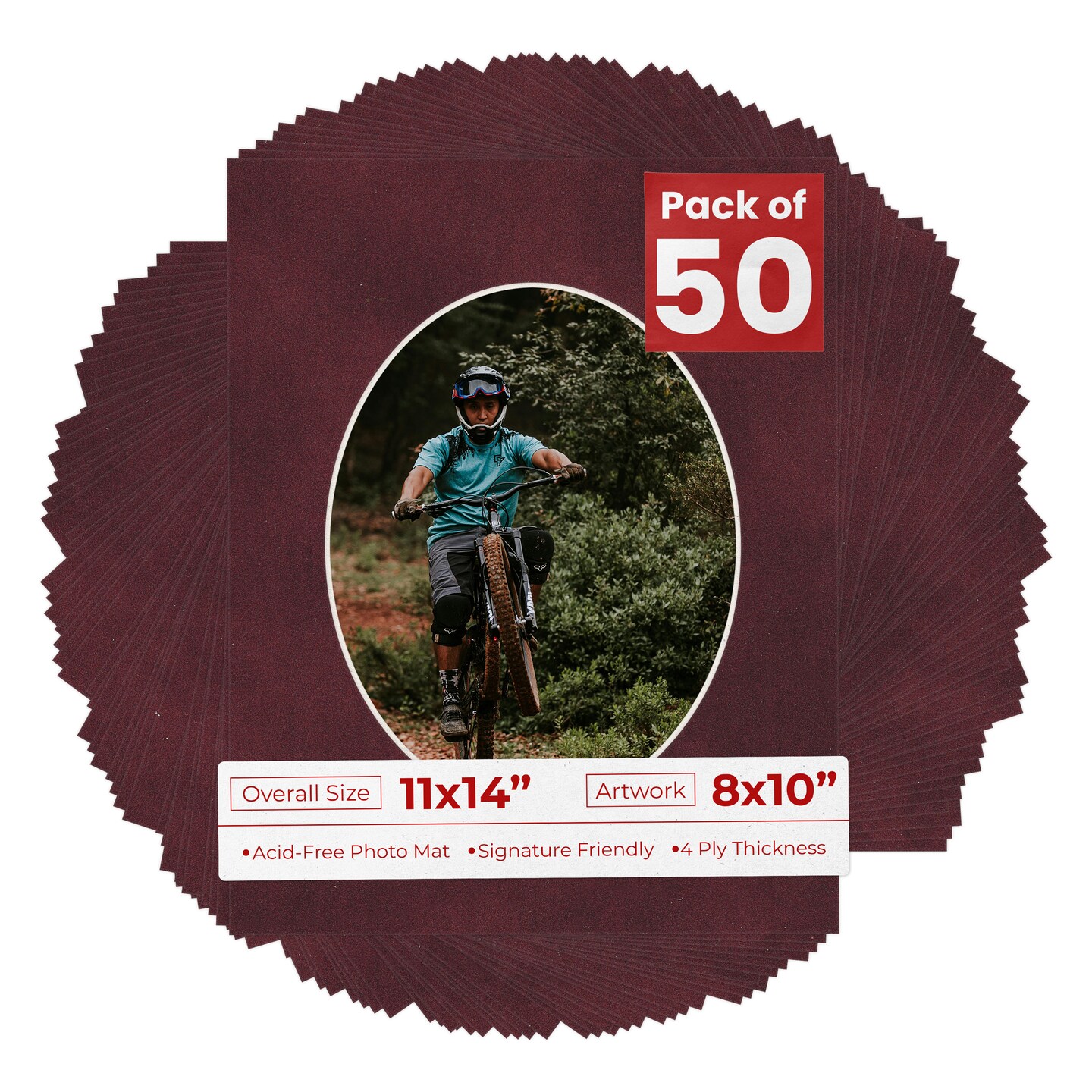Dark Red Suede Mat Board for 11x14 Frames - Oval Opening for 8x10 Photos