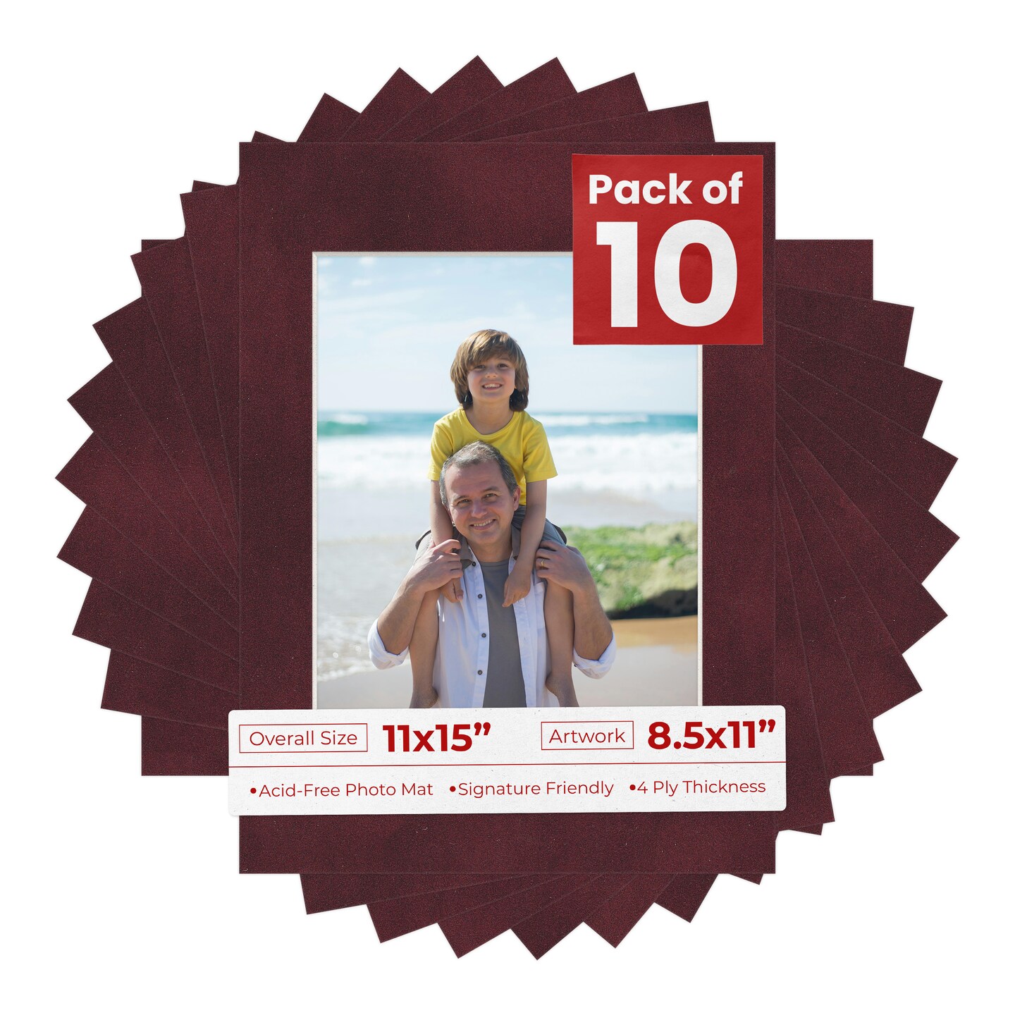 Dark Red Suede Mat Board for 11x15 Frames - Fits 8.5x11 Photos