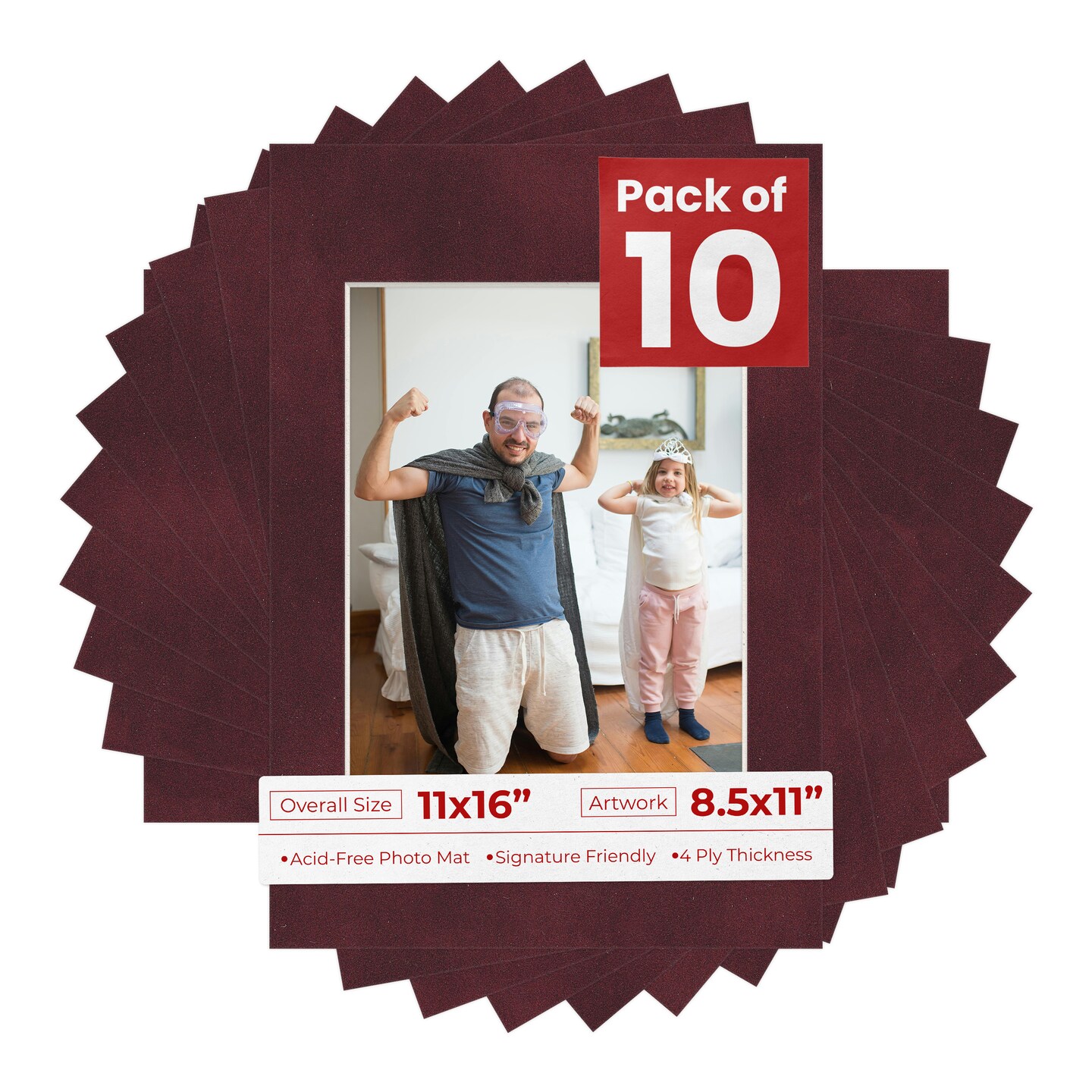Dark Red Suede Mat Board for 11x16 Frames - Fits 8.5x11 Photos