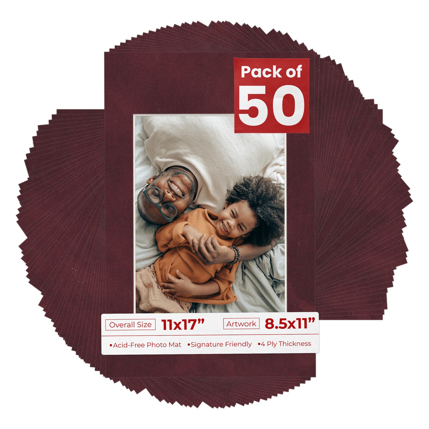 Dark Red Suede Mat Board for 11x17 Frames - Fits 8.5x11 Photos