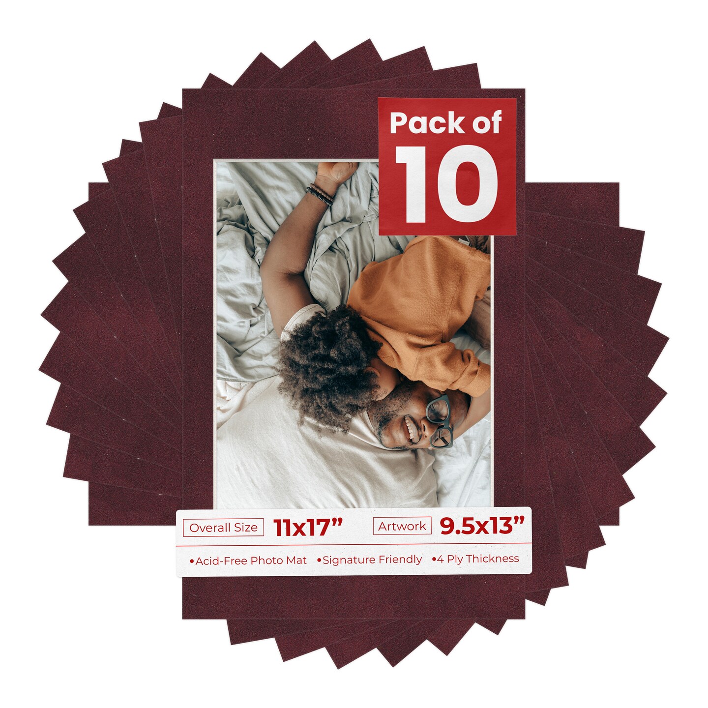 Dark Red Suede Mat Board for 11x17 Frames - Fits 9.5x13 Photos