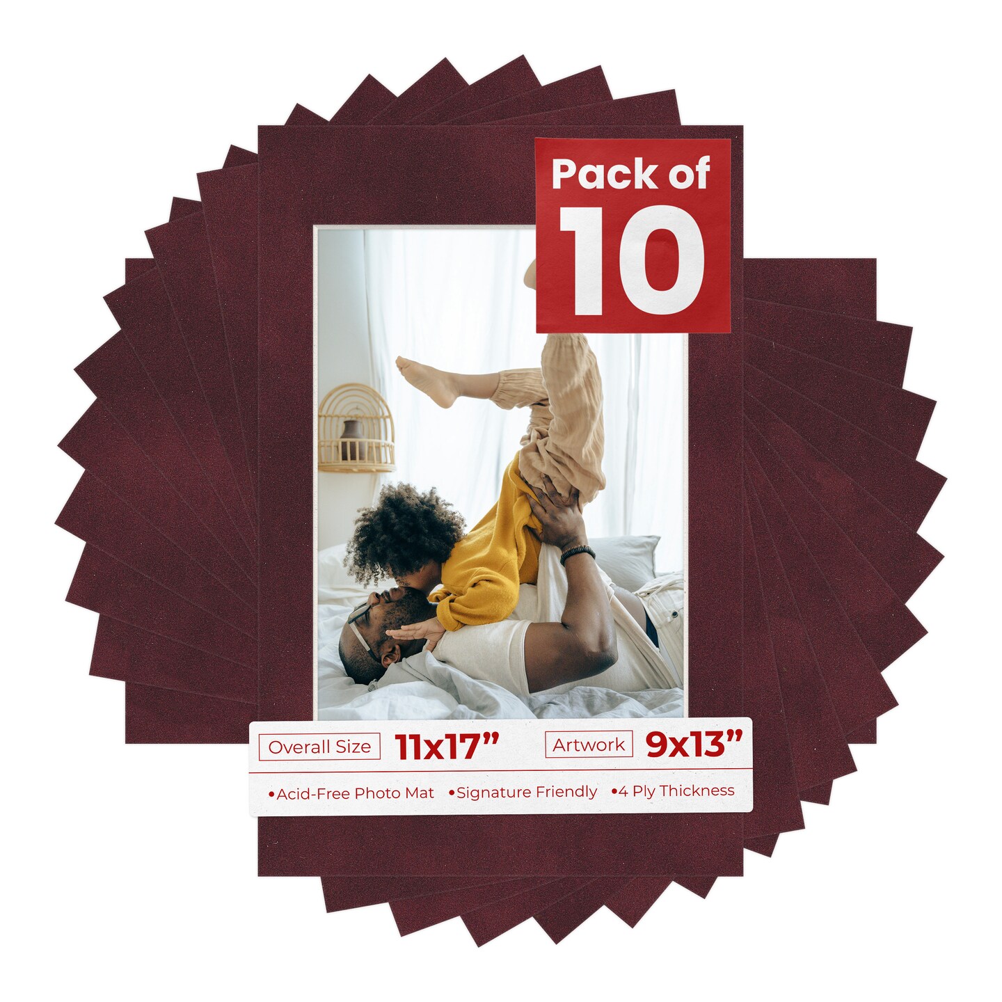 Dark Red Suede Mat Board for 11x17 Frames - Fits 9x13 Photos