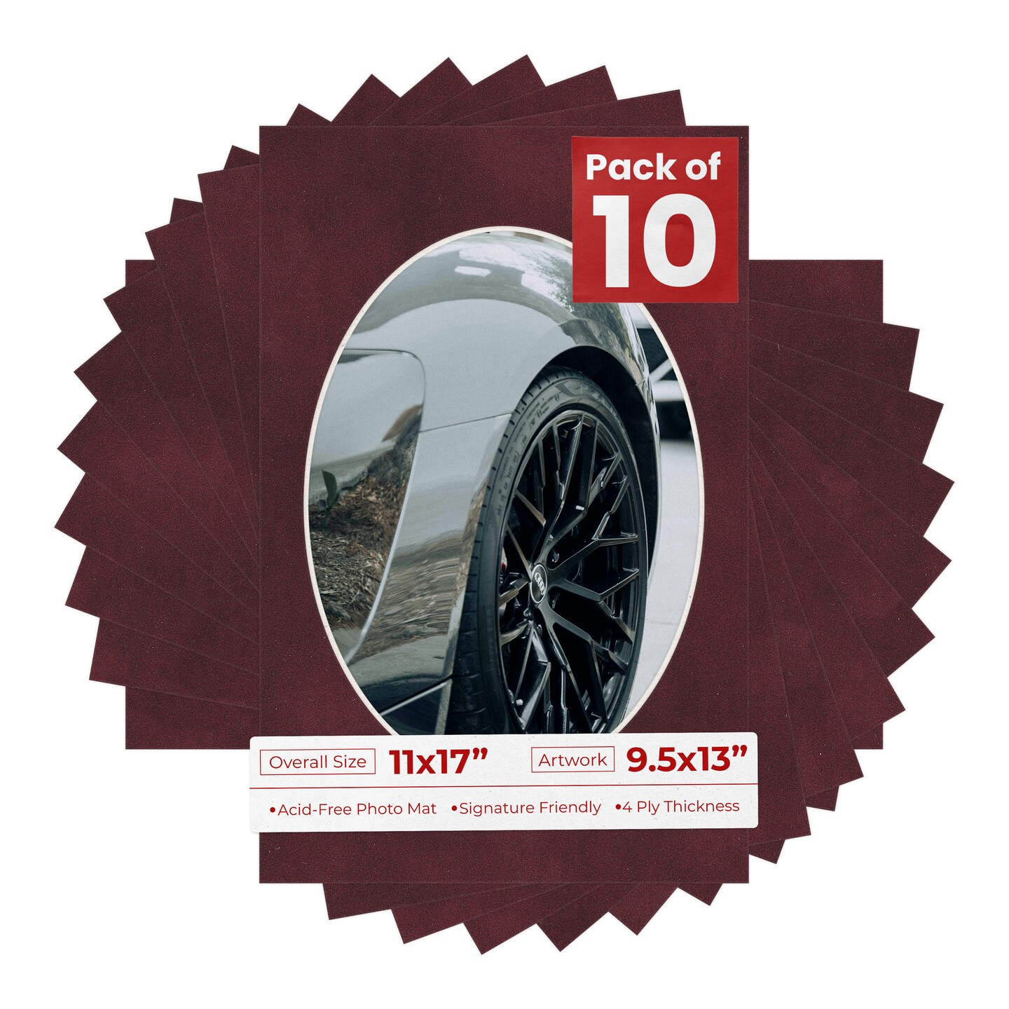 Dark Red Suede Mat Board for 11x17 Frames - Oval Opening for 9.5x13 Photos