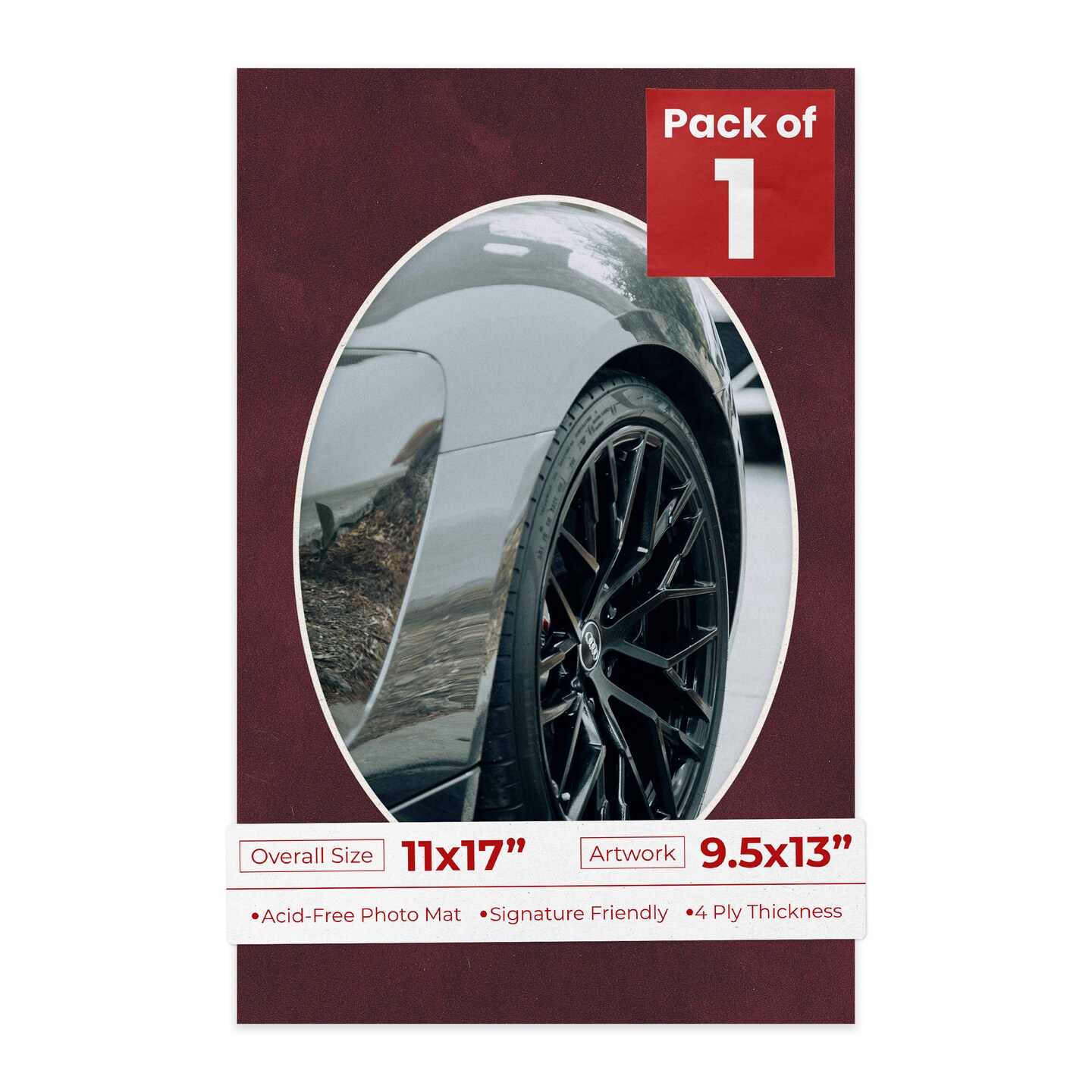 Dark Red Suede Mat Board for 11x17 Frames - Oval Opening for 9.5x13 Photos