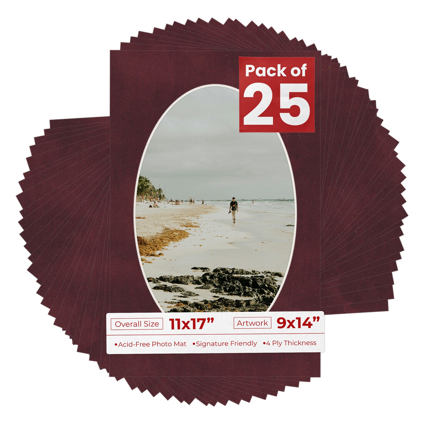 Dark Red Suede Mat Board for 11x17 Frames - Oval Opening for 9x14 Photos
