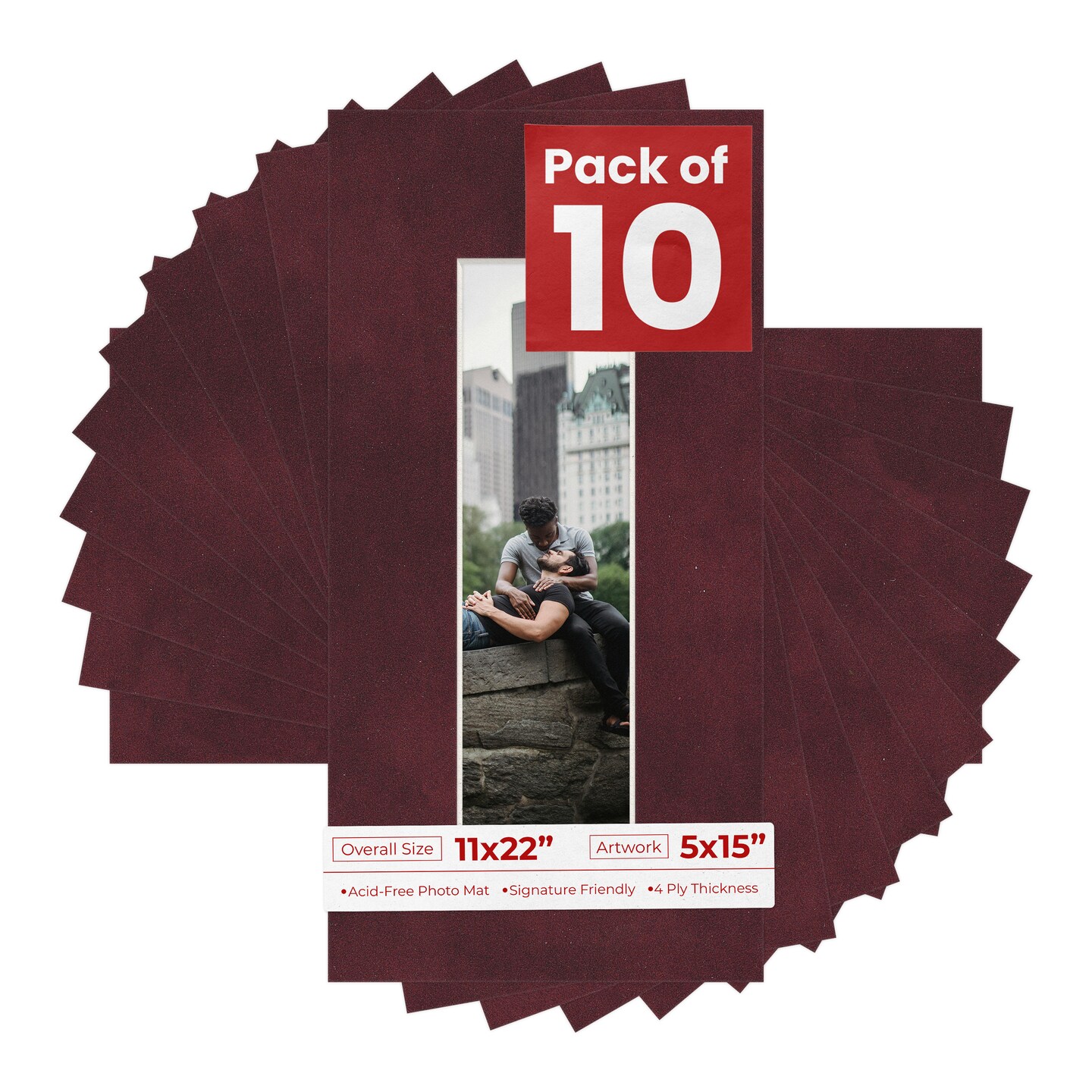 Dark Red Suede Mat Board for 11x22 Frames - Fits 5x15 Photos