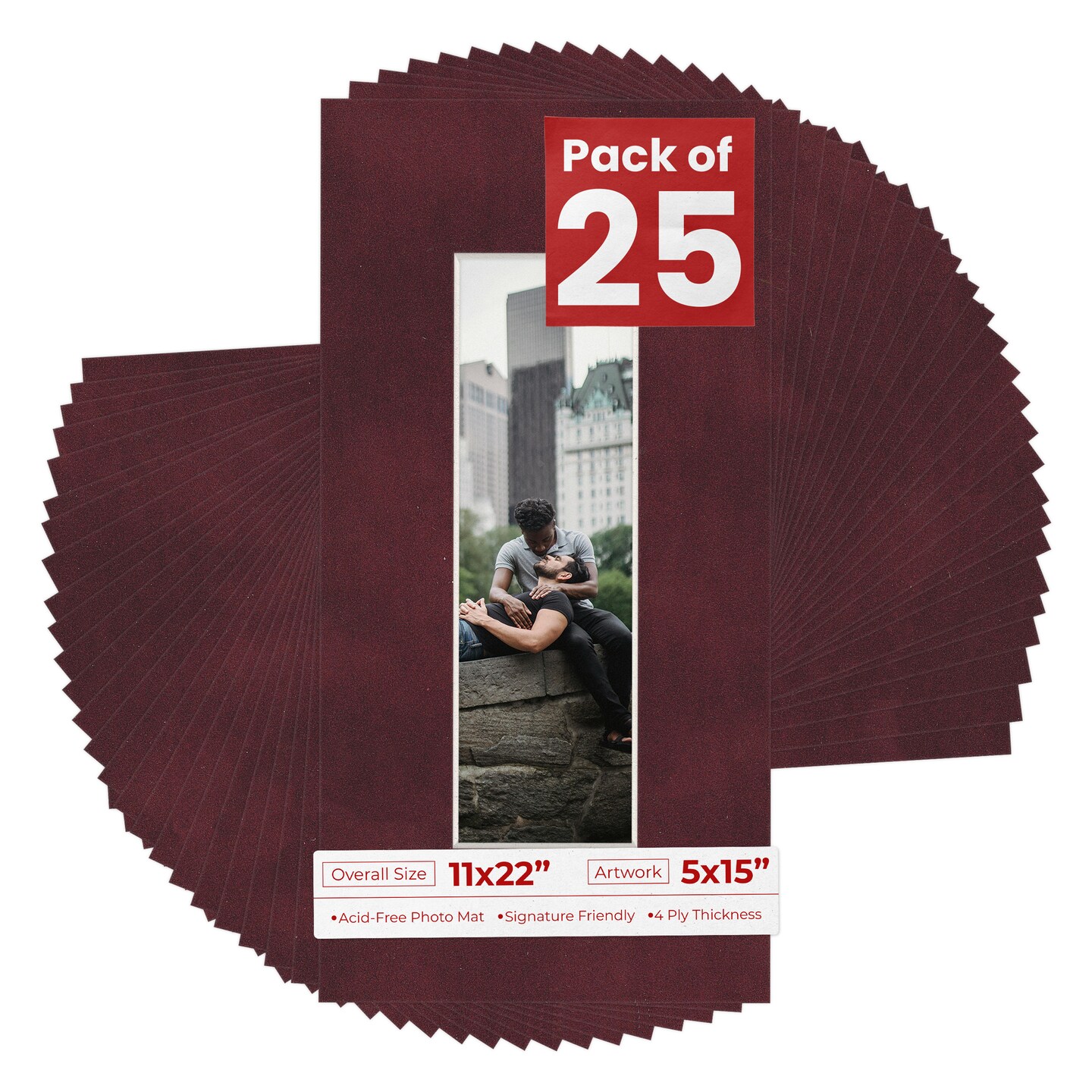 Dark Red Suede Mat Board for 11x22 Frames - Fits 5x15 Photos