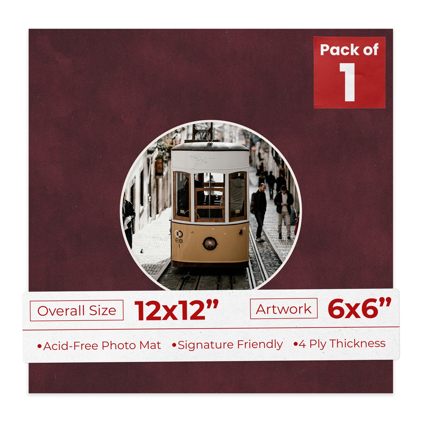Dark Red Suede Mat Board for 12x12 Frames - Circle Opening for 6x6 Photos